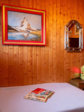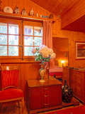 Haus: Schönes Chalet mit Kamin. 4-Zimmer-Chalet mit 120 qm Wohnfläche über 2 Etagen. Gemütliches Ambiente durch Holzvertäfelung in fast allen Räumen. Internet kostenlos über W-Lan. Waschmaschine. Öl-Zentralheizung. Warmwasser über 300 l E-Boiler. Im Tiefparterre: Spielzimmer mit Mini-Kicker. Balkon, Terrasse (Sitzmöbel). Garten mit rustikaler Holz-Sitzecke, Grill. 2 Pkw-Stellplätze am Haus, 2 weitere ca. 40 m entfernt.
