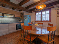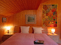 Parterre: Windfang mit Garderobe. Großzügig bis zum Dachgiebel ausgebauter Wohnraum mit gemütlicher Sitzgruppe am Kamin, TV, DVD, Blutooth-Radio, Esstisch, thekenartig abgetrennter, gut ausgestatteter Küche (Backofen, Spülmaschine, Wein-Kühlschrank), Balkon. Bad: Bw/Du, Wb, WC. Vom Wohnraum Treppe in die