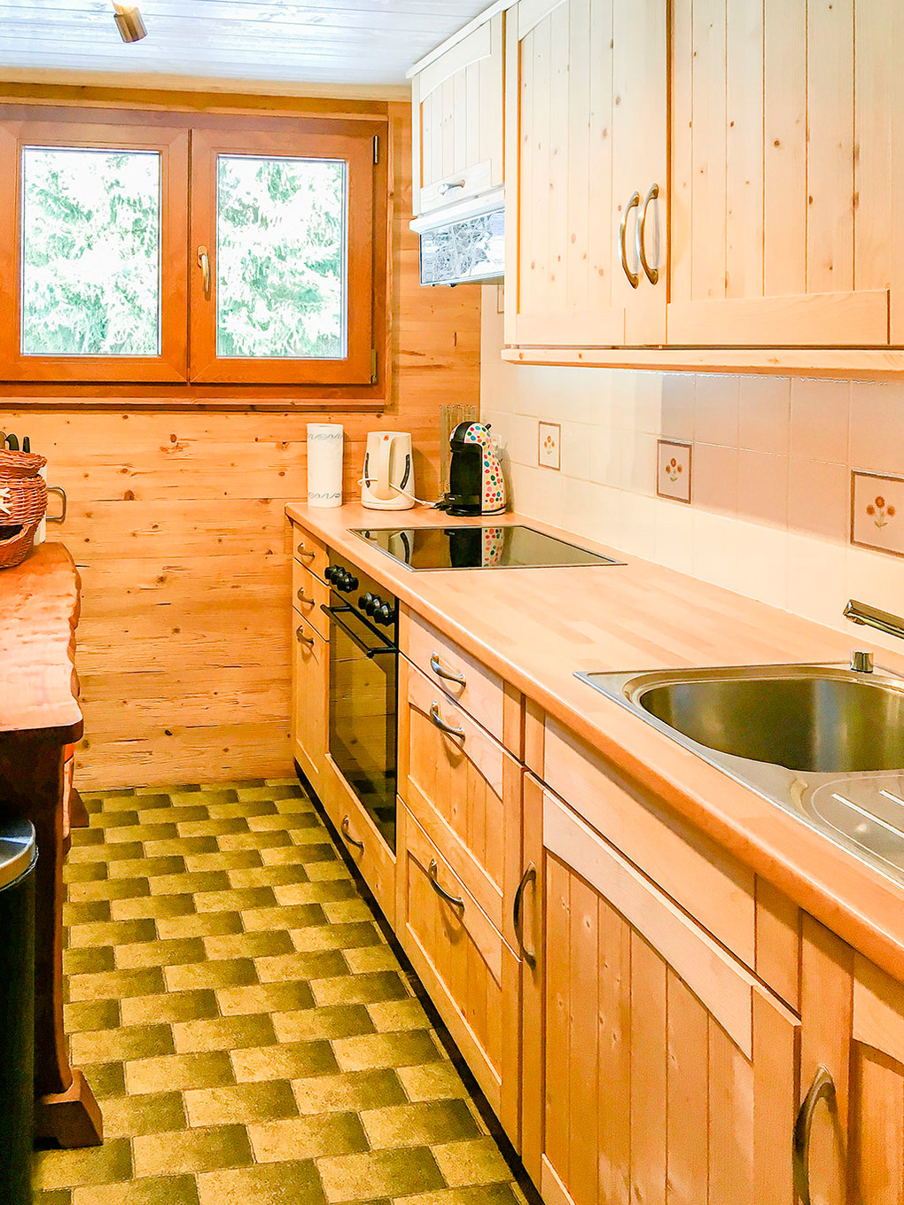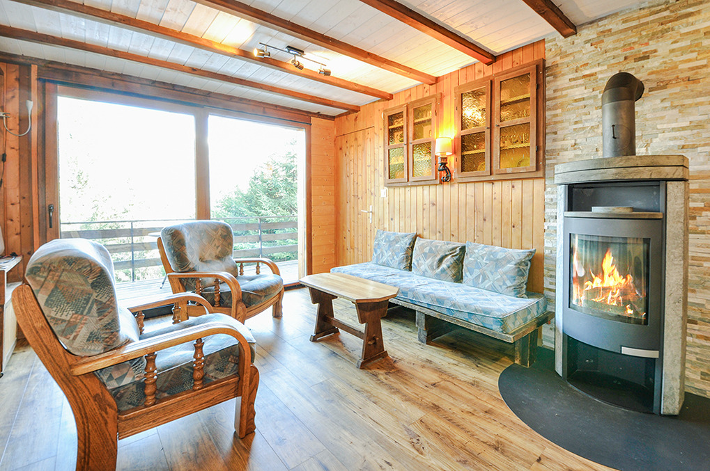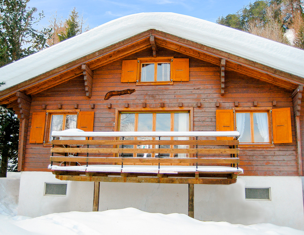 Haus: Gepflegtes Chalet mit Kaminofen. 5-Zimmerhaus mit 90 qm Wohnfläche über 3 Etagen. Rustikales Ambiente durch Holzvertäfelung in allen Räumen. E-Zentralheizung (Wärmepumpe). Balkon. Skiraum.