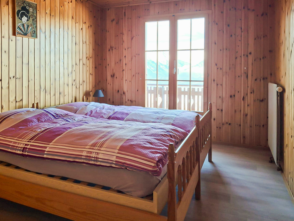 Ort: Veysonnaz. Top-Lage oberhalb des Ortes in der Nähe der Talabfahrt. Ruhige Hanglage mit schönem Blick ins Rhône-Tal. Pkw-Zufahrt bis zum Haus. Skiabfahrt bis in Hausnähe. Talabfahrt 180 m. Gondelstation 300 m. Ortsmitte 600 m.
