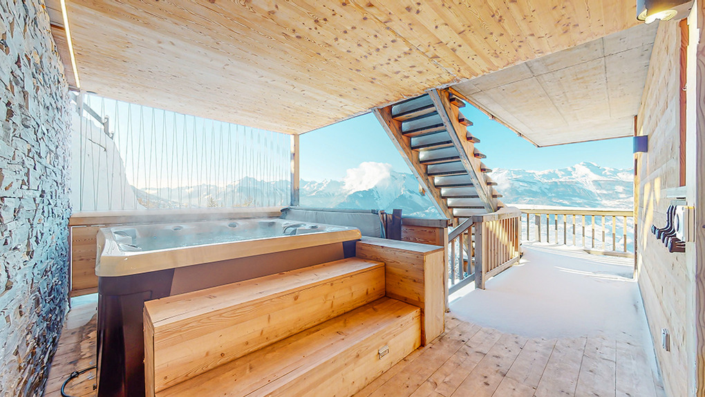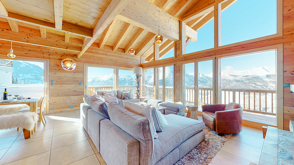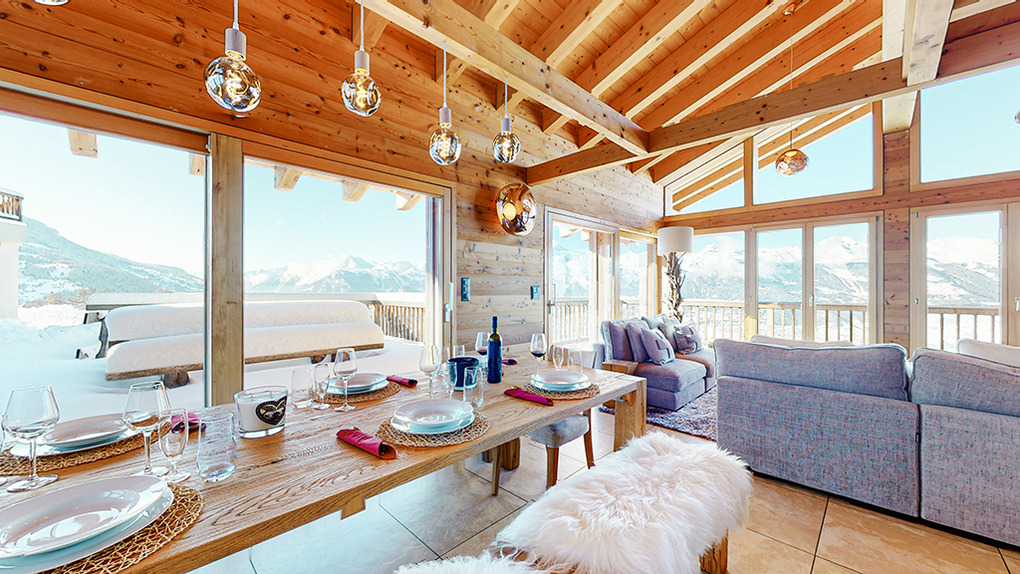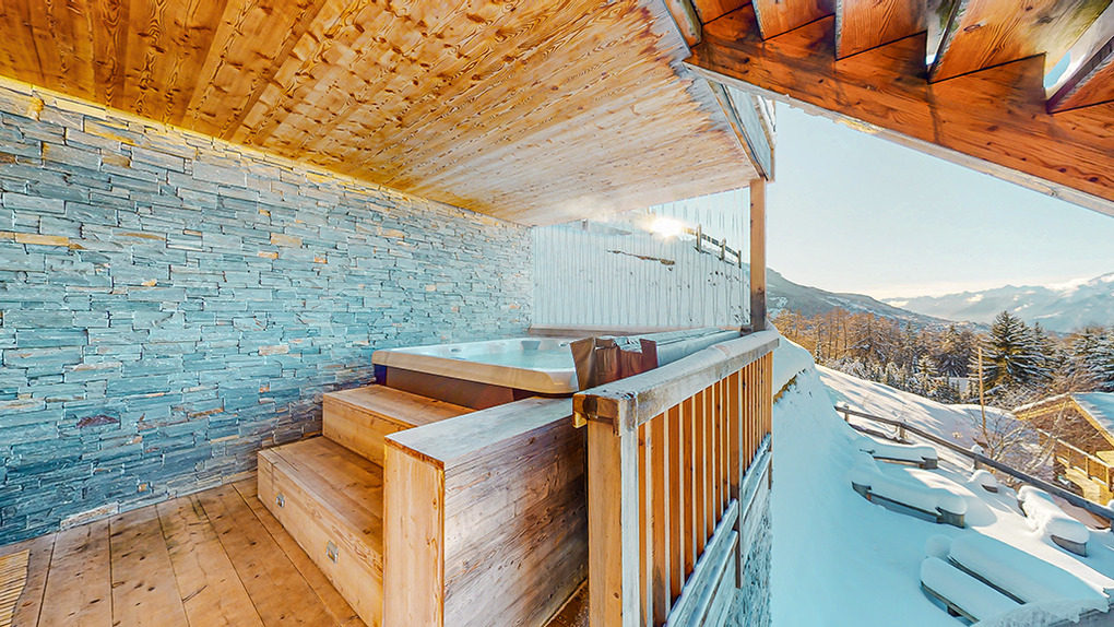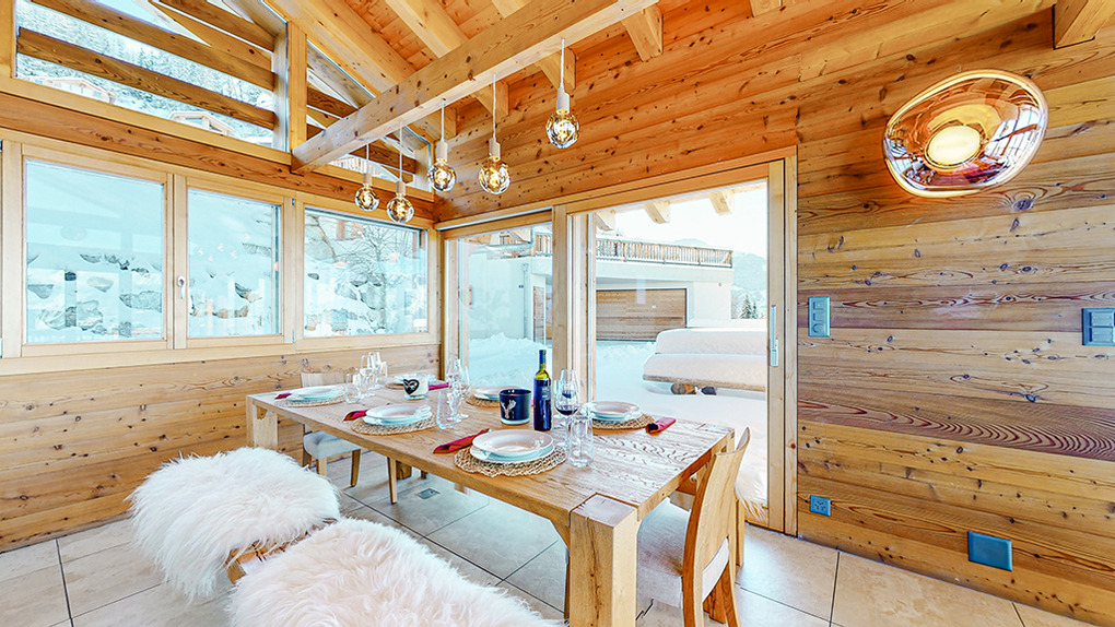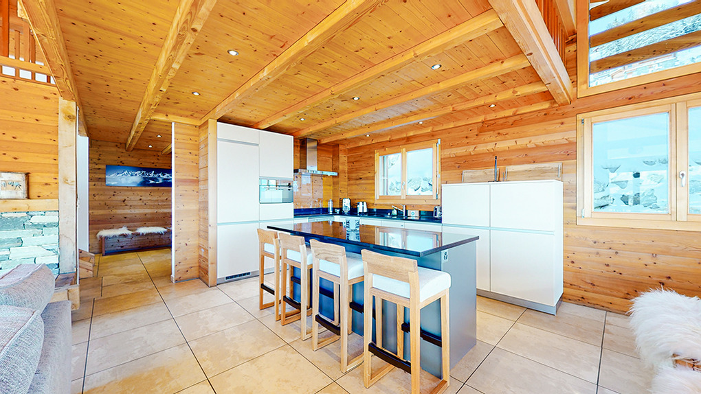 Ort: Veysonnaz. Top-Lage oberhalb des Ortes direkt an der beschneiten Talabfahrt. Ruhige Hanglage mit sehr schönem Panoramablick ins Rhône-Tal und auf die Piste. Skiabfahrt vom und bis zum Haus! Ortsmitte ca. 1,5 km mit dem Pkw, Gondelstation nur 120 m auf Skiern. Schwimmbad (Eintritt im Mietpreis enthalten) mit Dampf-/Sauna, Whirlpool (ermäßigter Eintritt). Zufahrt mit Winterausrüstung bis zum Haus. Garage für 1 Pkw, 1-2 weitere Parkplätze am Haus. Öffentlicher Parkplatz ca. 1 km, Parkhaus 1,5 km (Gebühr).