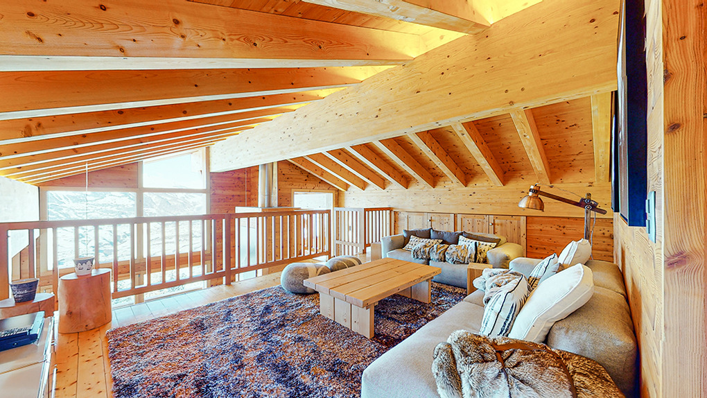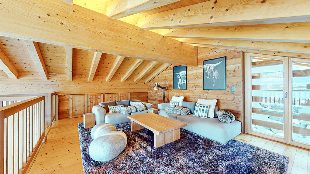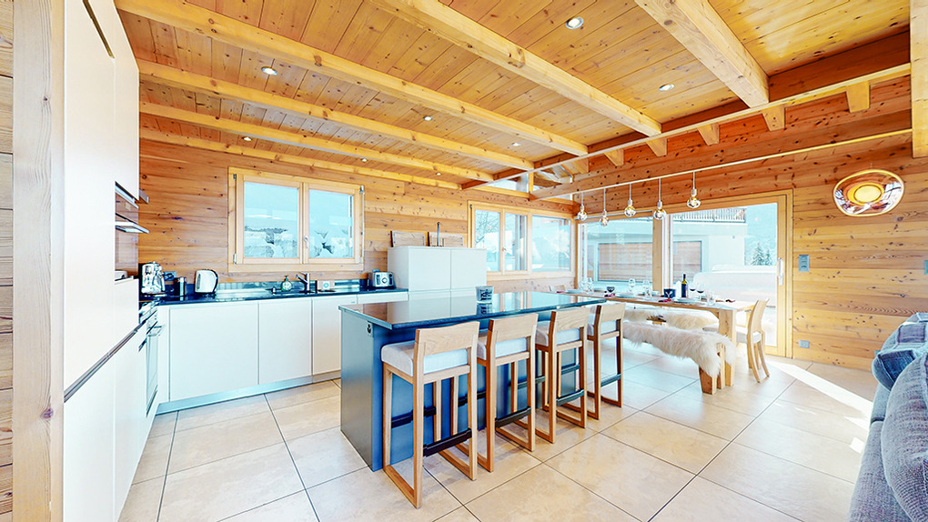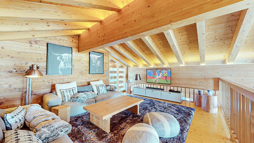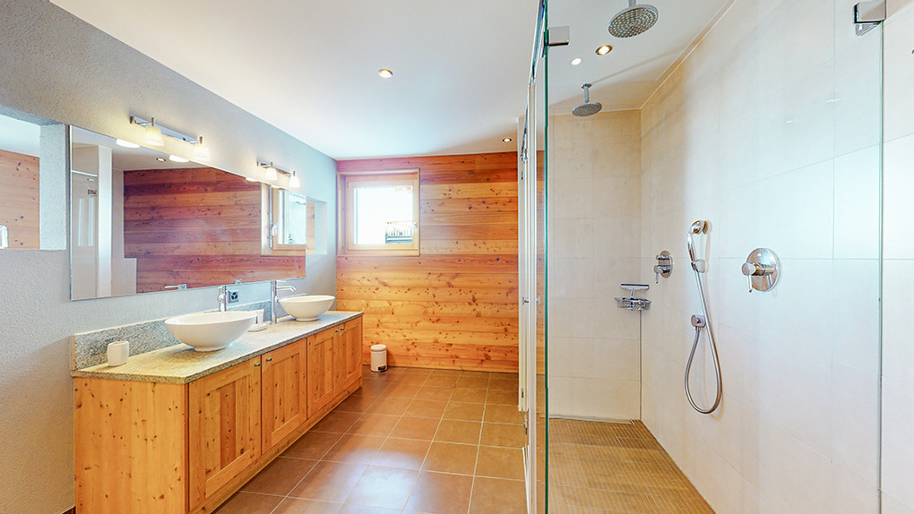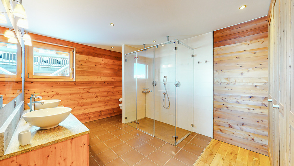 Haus: Sehr schönes, großzügiges Luxus-Chalet mit Sauna und Whirlpool. 6-Zimmerhaus mit 200 qm Wohnfläche über drei Etagen. 5 Schlafräume, 4 Bäder. Hochwertige, geschmackvolle Einrichtung. Zentrum des Hauses ist der lichtdurchflutete, bis in den Dachgiebel ausgebaute, große Wohnraum mit seinen umlaufenden Panoramafenstern. Internetzugang über W-Lan. Waschmaschine, Trockner. E-Fußbodenheizung. Warmwasser über 800 l E-Boiler. Garage mit Ski-/Schuhregalen. Großer Balkon mit Sitzmöbeln.