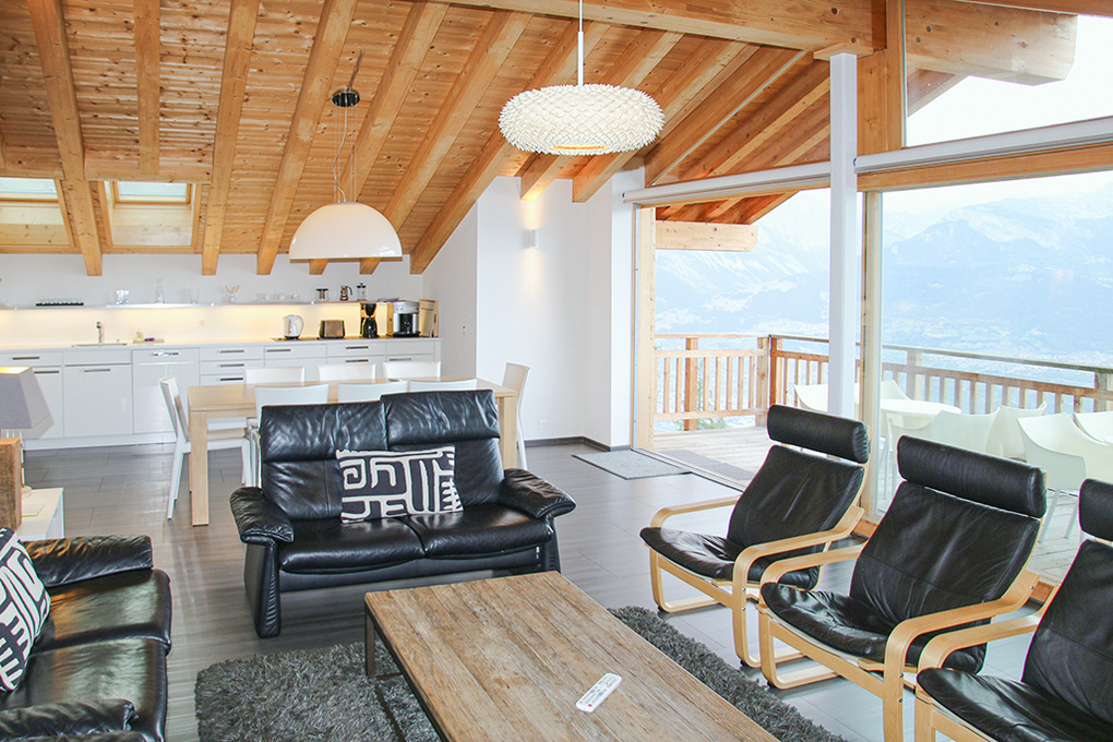 Ort: Veysonnaz. Top-Lage in der Nähe von Gondel und Talabfahrt (je 100 m). Exponierte Hanglage mit sehr schönem Blick ins Rhônetal. Ortsmitte 300 m. Schwimmbad (Eintritt im Mietpreis enthalten) mit Dampf-/Sauna, Whirlpool (ermäßigter Eintritt) 700 m.