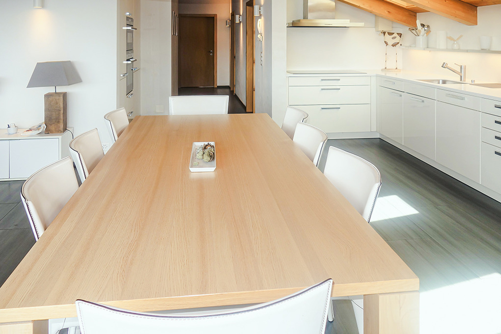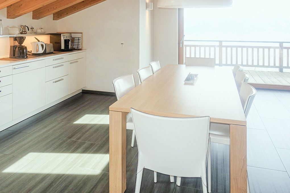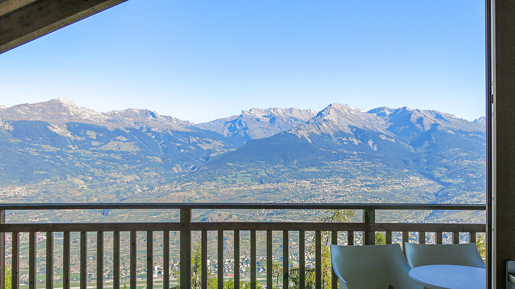 Haus: Sehr schöne holzverkleidete Residenz mit Wellnessbereich, 2010 neu erbaut. Schöne, sehr großzügige Komfort-Wohnungen mit moderner, geschmackvoller Einrichtung. Alle mit schönem Wohnraum, Kabel-TV, Radio/CD, Küchenzeile (Backofen, Spülmaschine). Kostenloser Internetzugang über Wlan. Einige Fewos mit Kaminofen. Alle Bäder mit Dusche oder Badewanne, Wb, WC. Balkon oder Terrasse mit phantastischem Blick ins Rhônetal und auf die Bergwelt des Wallis. Zentral-/Fußbodenheizung.
