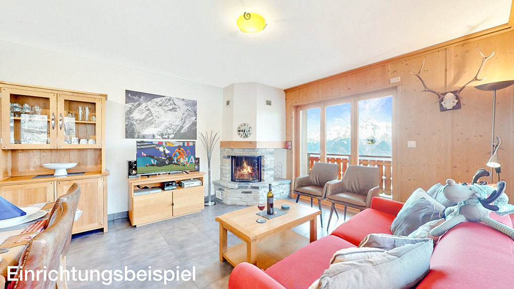 Haus: Zwei schöne Apartmenthäuser mit großzügigen Komfort-Wohnungen. Jede Fewo individuell gestaltet, alle mit geschmackvoller Einrichtung. Moderne Komfort-Ausstattung: Internet über W-Lan, Kabel-TV, DVD, Radio/CD, Küchenzeile (Backofen, Mikrowelle, Spülmaschine). Die meisten Fewos mit Kamin. Balkon oder Terrasse mit Gartenmöbeln, phantastischem Blick ins Rhônetal und auf die Bergwelt des Wallis. Zentral-/Fußbodenheizung.