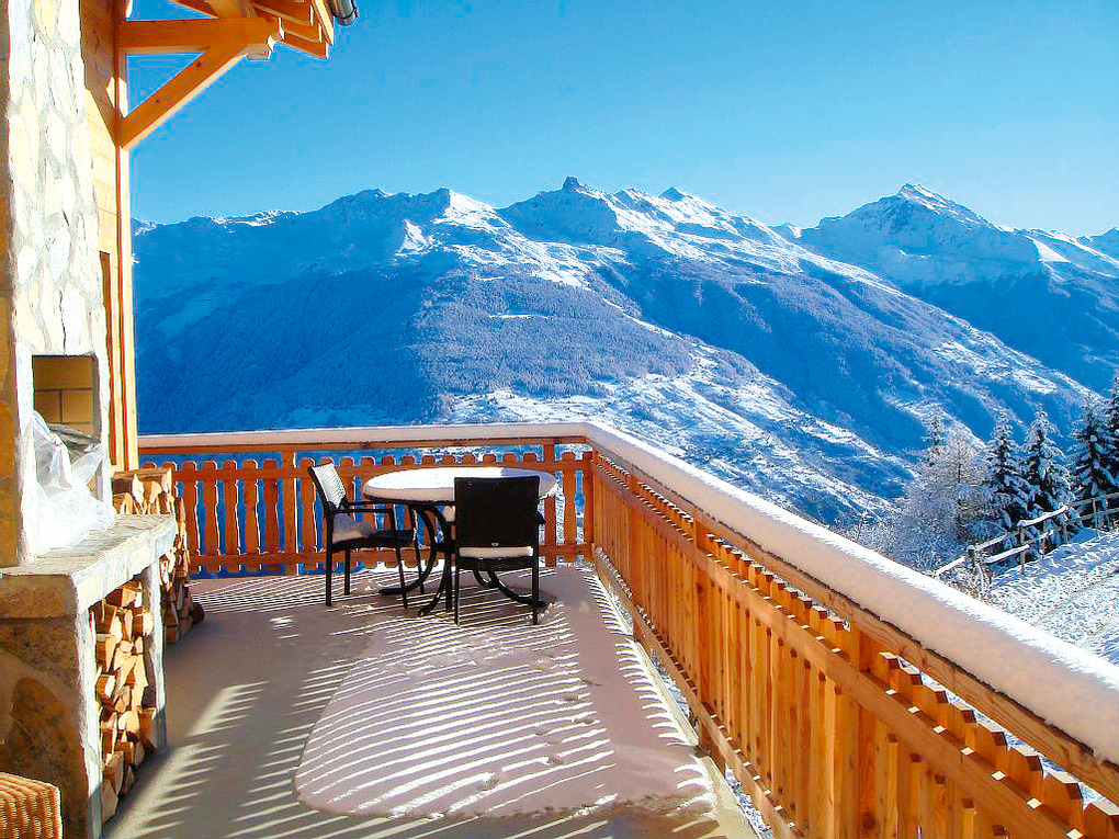 Ort: Les Collons. Top-Lage auf 1800 m Höhe in einer kleinen Chaletsiedlung. Phantastischer Blick auf die Viertausender des Val d'Hérens bis zum Matterhorn. Sessellift 800 m. Ortsmitte mit Restaurants, Irish Pub 400 m.