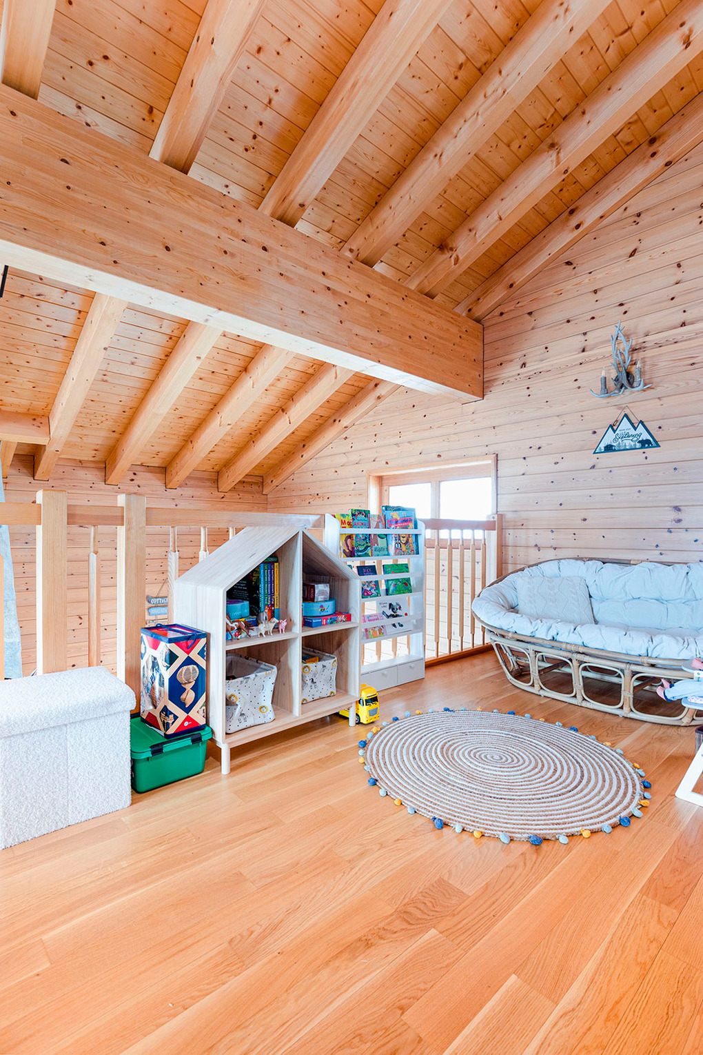 2. Etage: Schöne Galerie, offen zum Wohnraum mit Schlafsofa (2 Pers.), Flachbild-TV, DVD, Nintendo-Switch. Großes Doppelzimmer mit Bad (Bw/Du, Wb, WC).