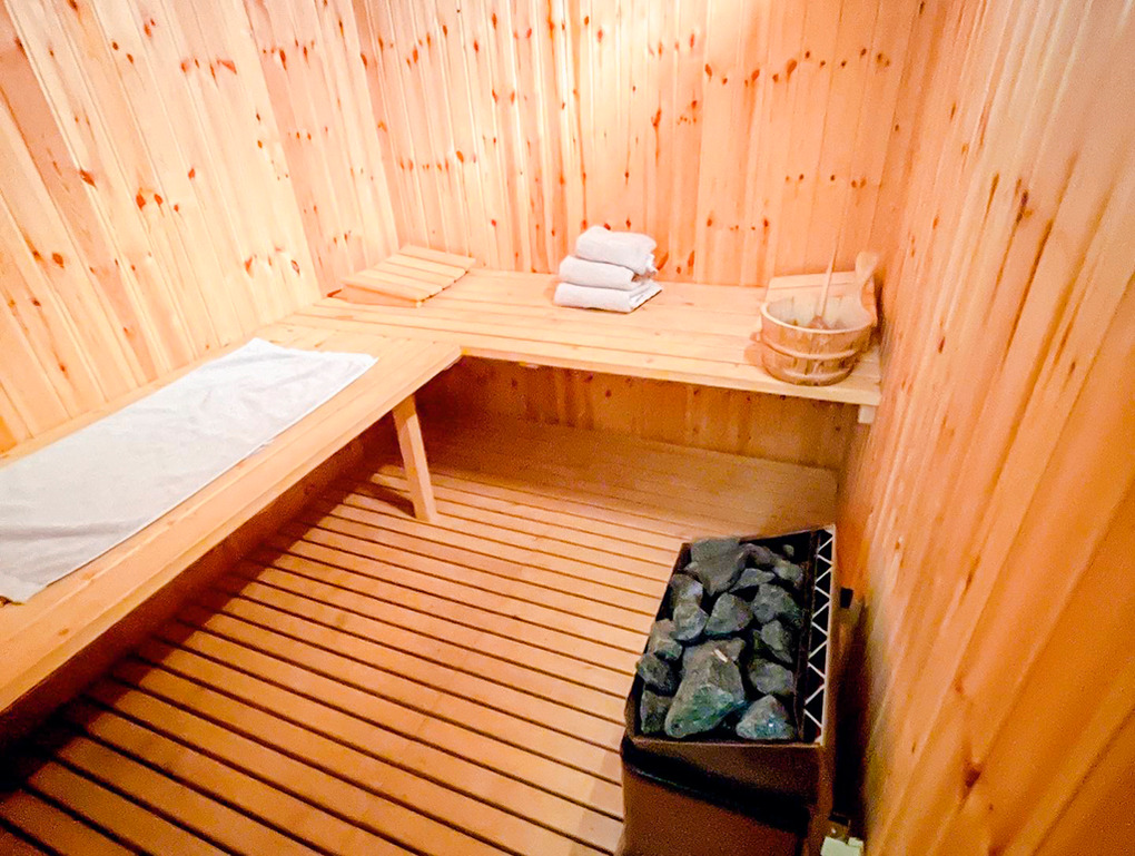 Parterre: Doppelzimmer mit franz. Bett. Doppelzimmer mit franz. Bett, Terrasse. 2-Bettzimmer mit Einzelbett, Ausziehbett. Bad: Du, Wb, Sauna. Separates WC.