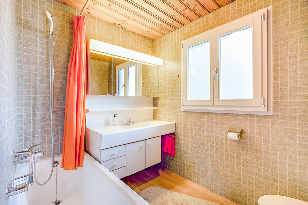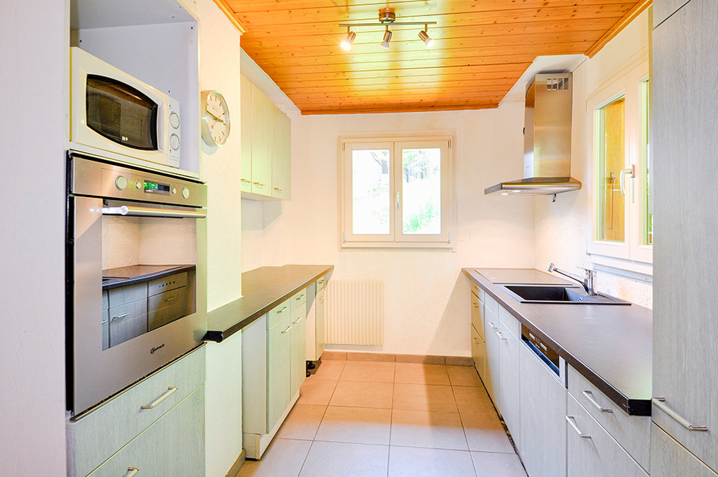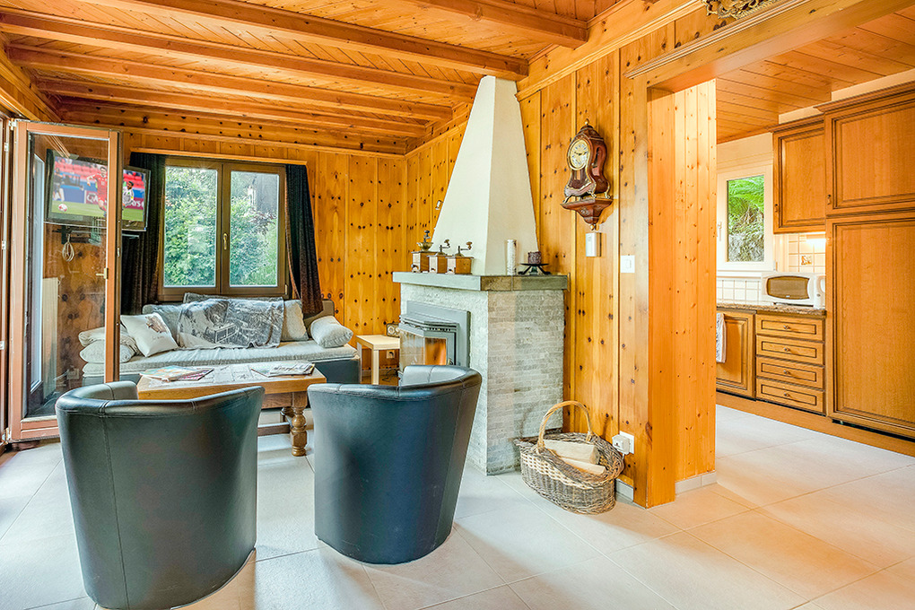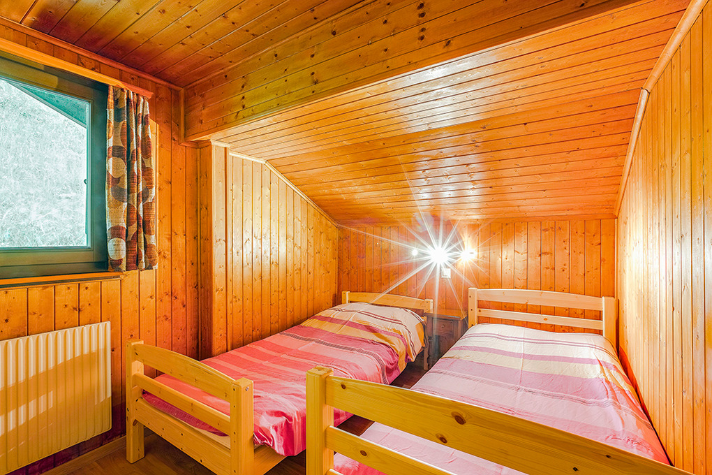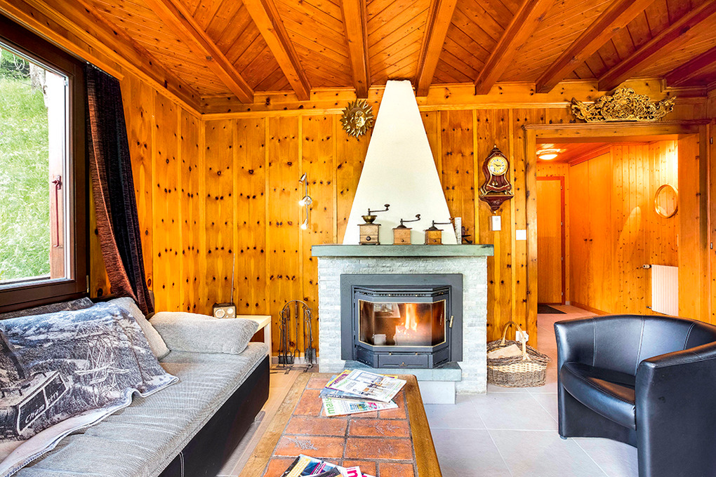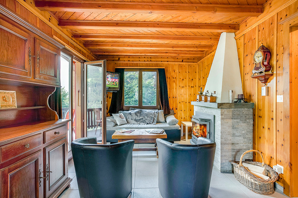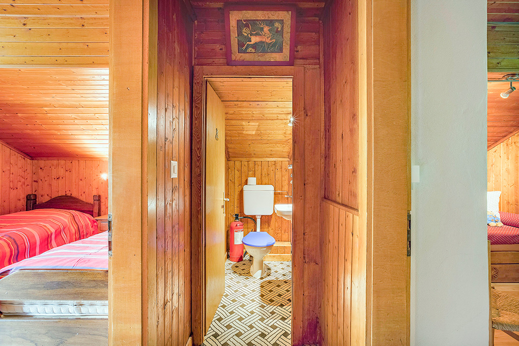 Haus: Schönes Holz-Chalet mit Kamin. 5-Zimmer-Haus mit 85 qm Wohnfläche über 2 Etagen. Gemütlich-rustikale Einrichtung, komplett holzvertäfelt. Großer Balkon mit Sitzmöbeln. Ölzentralheizung. Separate Fewo im Tiefparterre (selten genutzt). 1 Pkw-Stellplatz am Haus, öffentlicher Parkplatz 180 m (Gebühr).