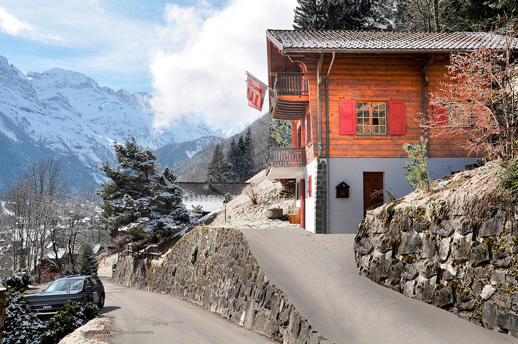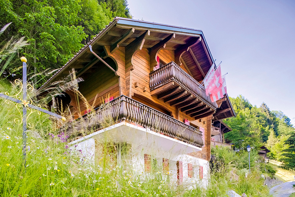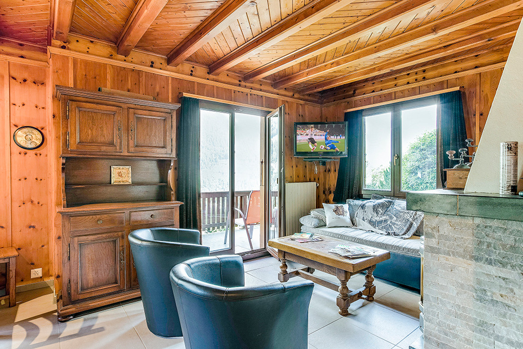 Ort: Champéry. Sehr schöne Hanglage etwas oberhalb des Ortes. Herrlicher Blick auf Champéry und die beeindruckende Bergkette "Dents du Midi". Ortsmitte mit Geschäften nur 300 m. Gondel 800 m. Skibus 100 m. Sportzentrum Palladium mit Eislaufhalle, Hallenbad, Kletterwand 1,2 km.