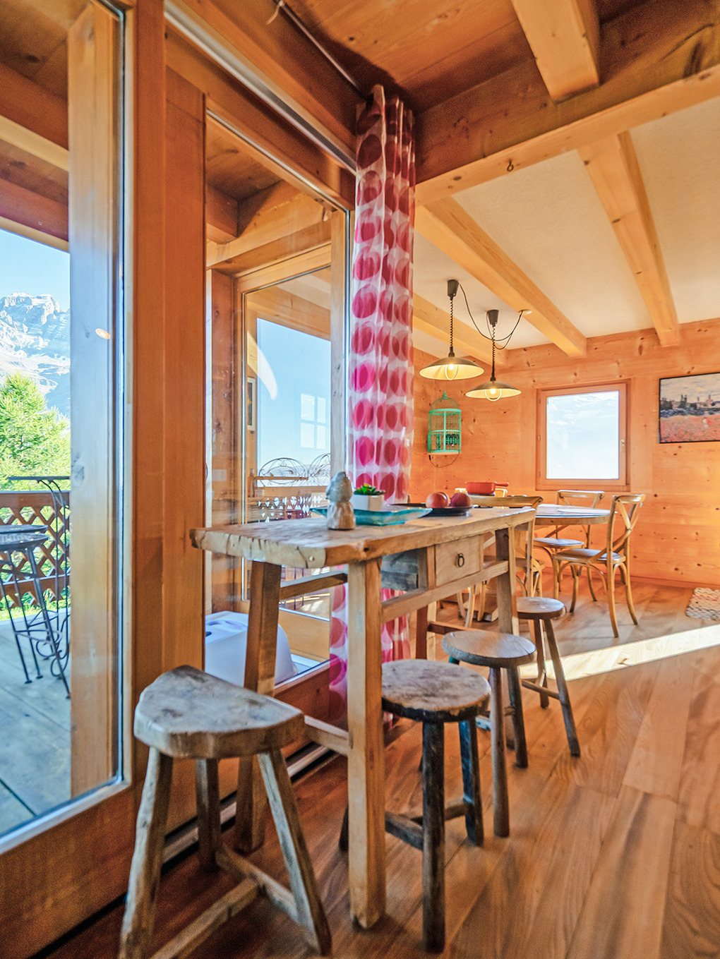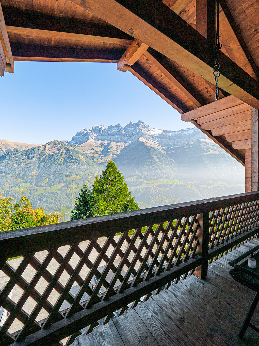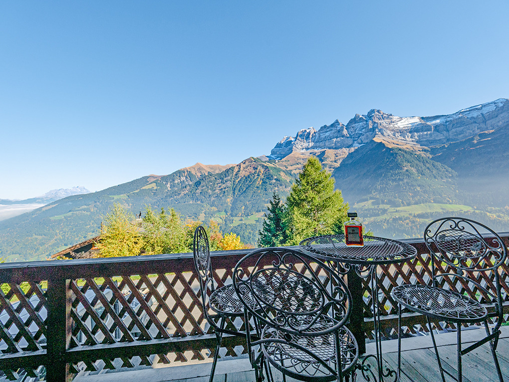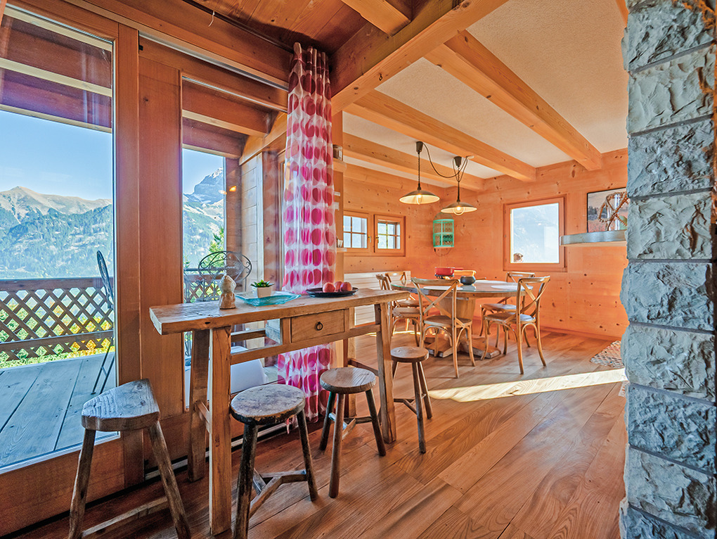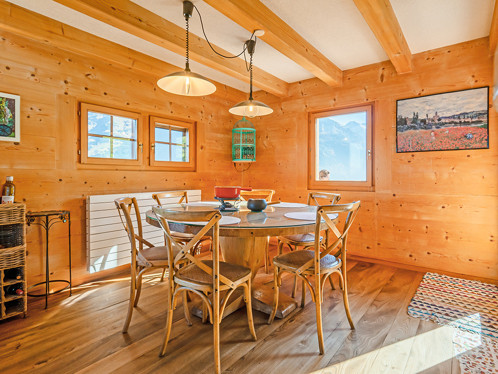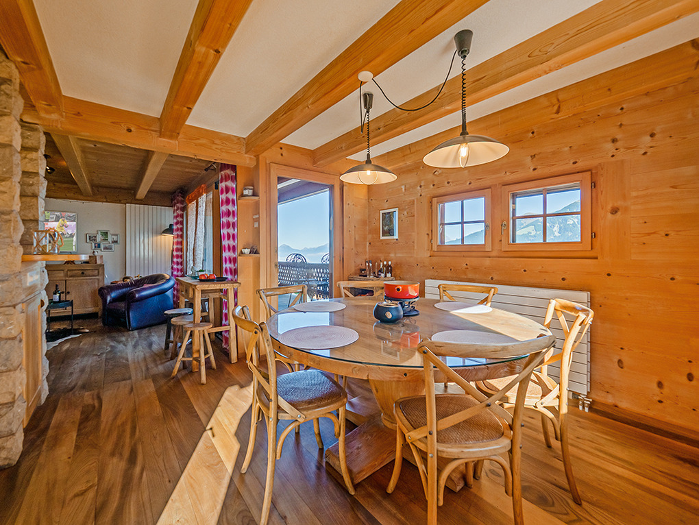 Ort: Kleiner Weiler vor Les Crosets. Ruhige Hanglage mit sehr schönem Blick auf die Berggruppe "Dents du Midi". Les Crosets mit Skiliften, Geschäften 4 km. Skilifte Champoussin 4,5 km. Postbus ca. 500 m. Sportzentrum Champéry mit Eislaufhalle, Hallenbad, Kletterwand 8,2 km.