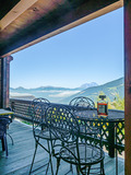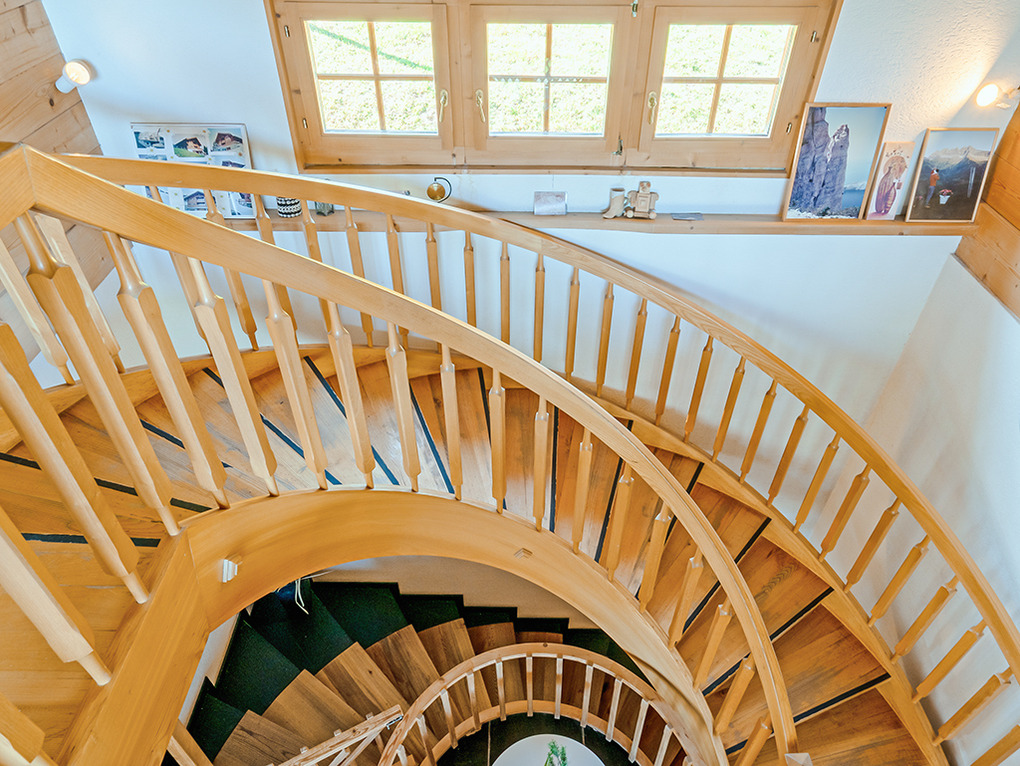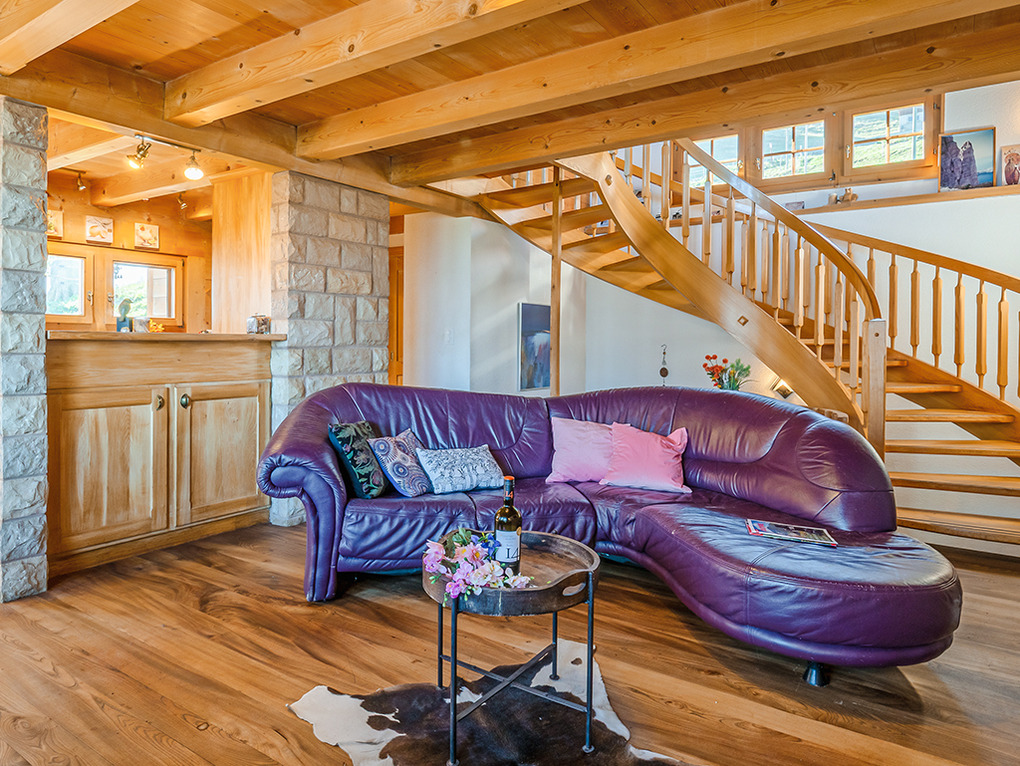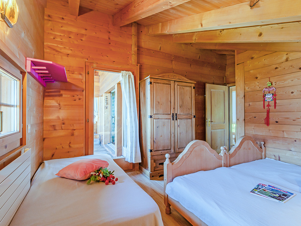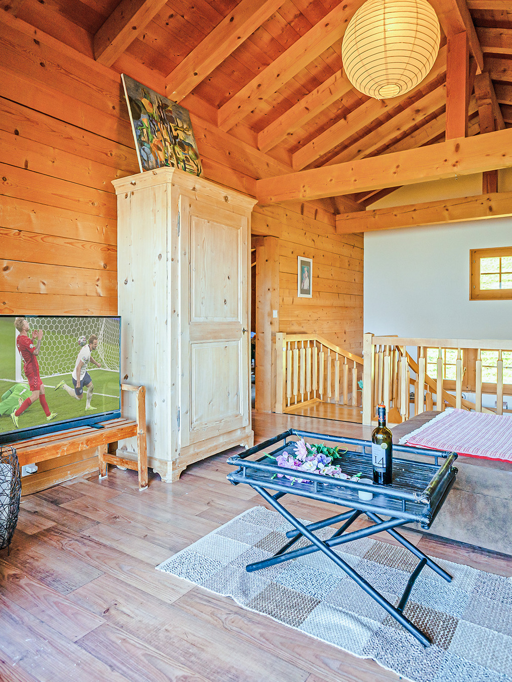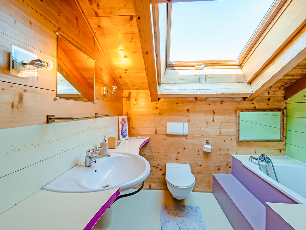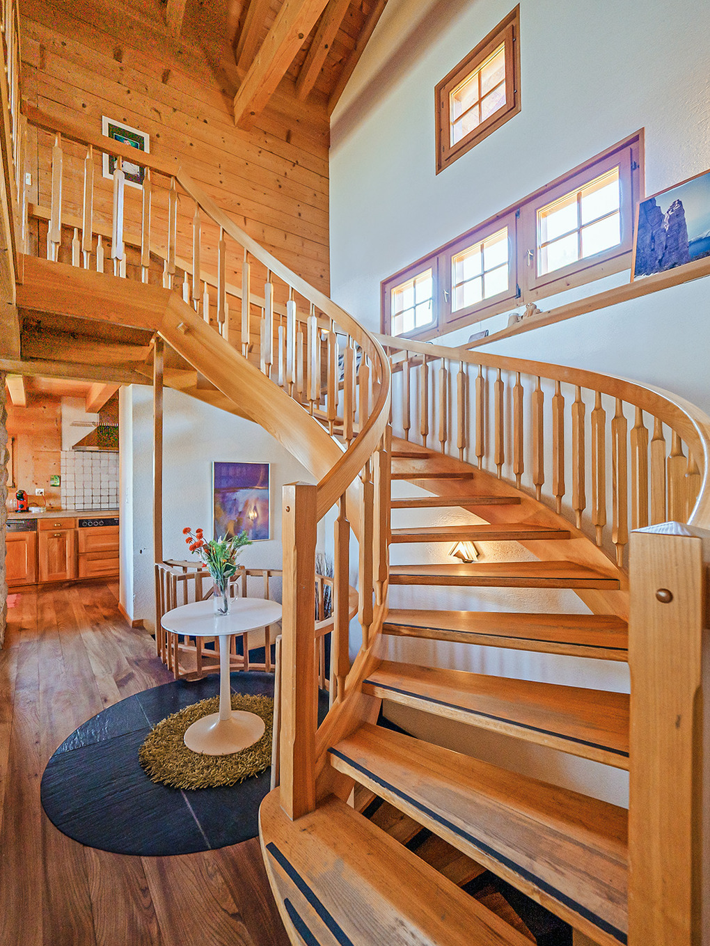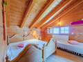 2. Etage: Doppelzimmer. Doppelzimmer mit franz. Bett, leichten Schrägen. 3-Bettzimmer. 3-Bettzimmer mit 2 Einzelbetten, Zusatzmatratze. Große, gemütliche Galerie, offen zum Wohnraum mit Panoramafenstern, schönem Bergblick, Flachbild-Sat-TV, Sitzgruppe, überdachtem Balkon. Zwei Bäder: Du bzw. Bw, Wb, WC.