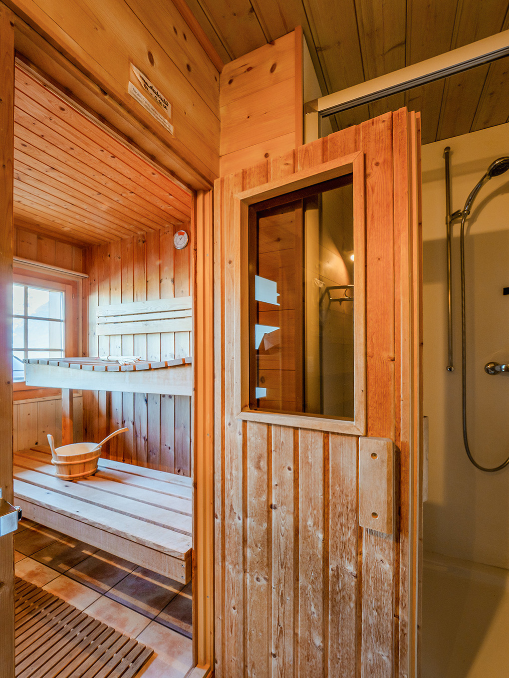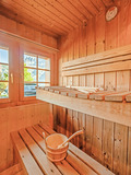 Parterre: Kleiner Wellnessbereich: Panoramasauna mit schönem Blick auf die Bergwelt, Dusche. Abstellraum.
