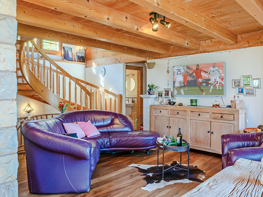 Haus: Sehr schönes Chalet mit Sauna. 7-Zimmer-Chalet mit 210 qm Wohnfläche über 3 Etagen. 6 Schlafräume, 3 Bäder. Gediegene Einrichtung, großzügiges Platzangebot. Mittelpunkt des Chalets ist der sehr schöne, großzügige Wohnraum, ausgebaut bis in den Dachgiebel mit rustikalen Holzbalkendecken und ansprechenden Natursteinwänden. Balkone, große Sonnenterrasse. Internet kostenlos über W-Lan. Ölzentralheizung. Heizungsraum mit Skischuhregal. Garage mit Skistellmöglichkeit.