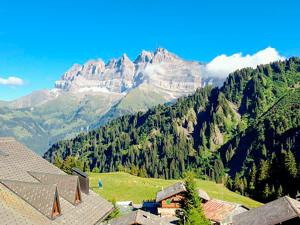 Haus: Regionaltypisches Chalet mit mehreren Wohnungen. Alle mit herrlichem Blick auf die Berggruppe "Dents du Midi" und die Pisten von Les Crosets. Kostenloser Internetzugang über W-Lan. Gemeinschafts-Skiraum. Ölzentralheizung. 1 Pkw-Stellplatz pro Wohnung am Haus.