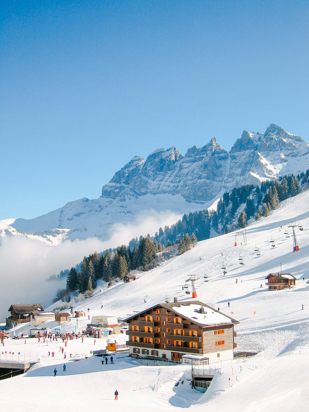 Ort: Les Crosets. Beste Lage direkt an der Skipiste! Skiabfahrt vom und bis zum Haus! Sessellifte 50-150 m. Restaurants, Lebensmittel, Sportgeschäfte mit Skiservice 250 m. Sportzentrum Champéry mit Eislaufhalle, Hallenbad, Kletterwand 8,6 km.