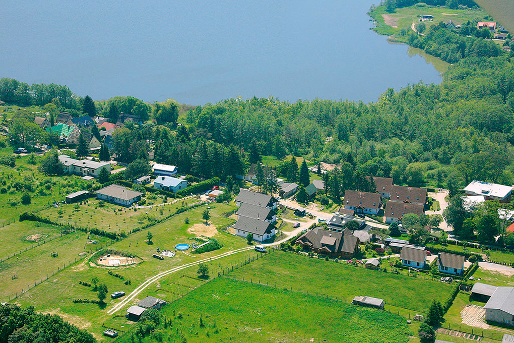 Moderne Ferienhäuser auf einem großen Gartengrundstück (7000 qm) mit gemeinschaftlichen Außenpool, Kinderschaukel, Rutsche, Grillplatz. 1 Pkw-Stellplatz/Haus. E-Ladesäulen vorhanden.