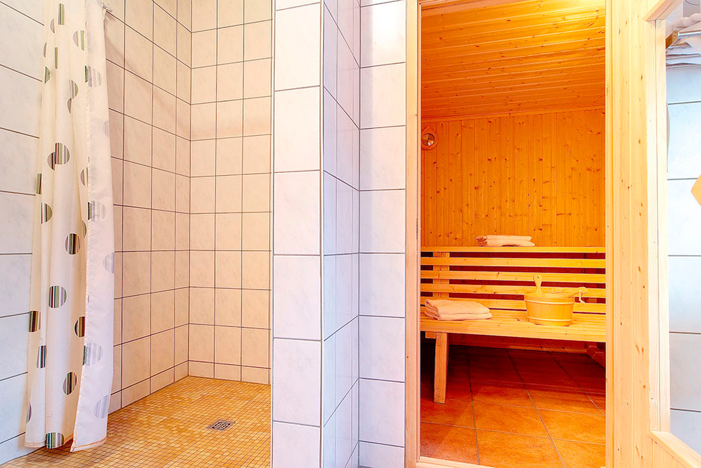 Haus: Drei Ferienhäuser mit Pool, Sauna (D 12.9) und Kamin. Moderne, freundliche Einrichtung. Internet-Zugang. Waschmaschine. Großes Platzangebot mit 120 qm Wohnfläche. Fußbodenheizung. Sonnenterrasse mit Sitzmöbeln. Nichtraucherhäuser.