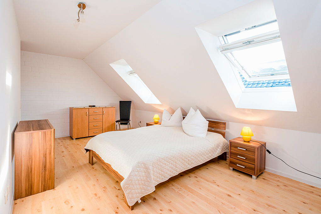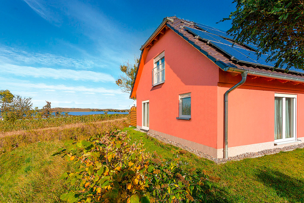 D 15.5 Ferienhaus 2-4 Pers.: 2 1/2-Zimmerhaushälfte, 72 qm Wohnfläche über 2 Etagen. Parterre: Heller Wohn-/Essraum mit Sitzecke, Esstisch, moderner Küchenzeile (Backofen, Mikrowelle). Doppelzimmer. Bad/WC. Treppe in die 1. Etage (leichte Dachschrägen): großzügiger, offener Wohn-/Schlafbereich mit Sitzecke, Sat-TV, 2 Einzelbetten (D 15.5/15.5B mit franz. Bett). Terrasse mit Sitzmöbeln, Grill, Wasserblick (D 15.5 und D 15.5A).