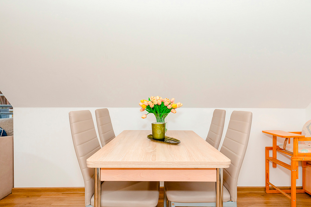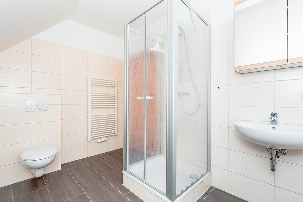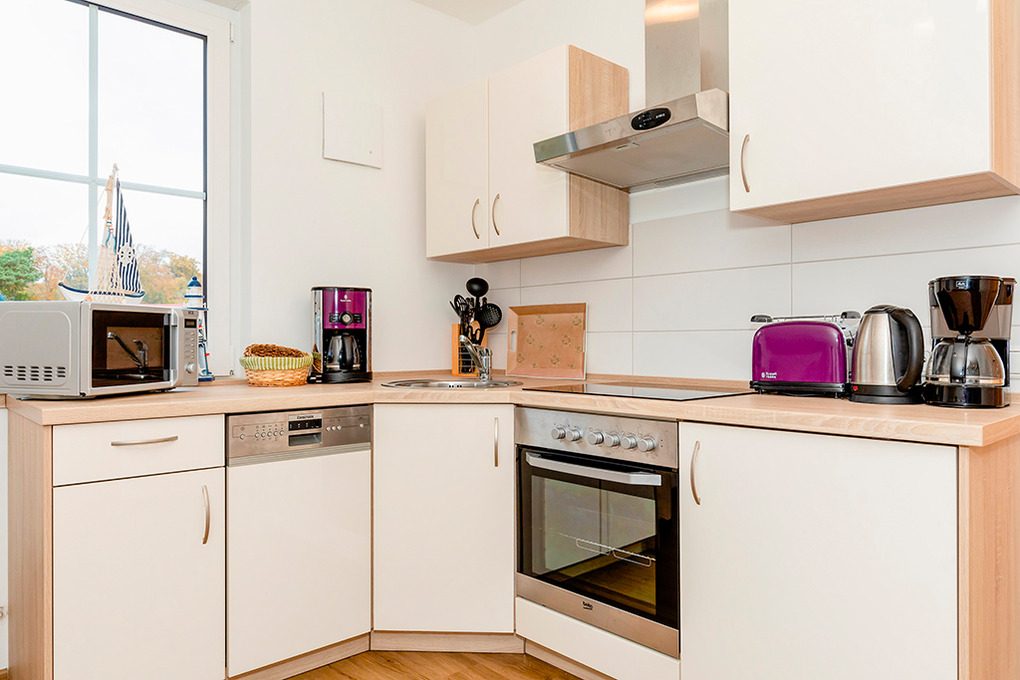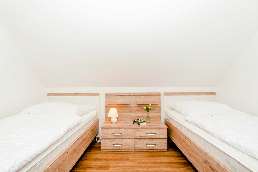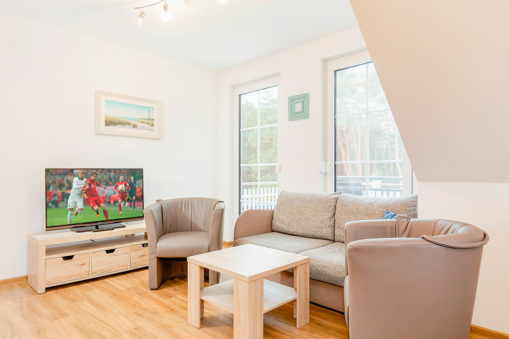 D 16.10A Wohnung 2-4 Pers.: 3-Zimmerwohnung mit 55 qm Wohnfläche, 1. Etage (eigener Zugang, Dachschrägen). Wohn-/Essraum mit gemütlicher Sofa-Sitzgruppe, Sat-TV, Radio/CD, Esstisch, Küchenzeile (Backofen, Mikrowelle, Spülmaschine). Doppelzimmer. 2-Bettzimmer. Bad/WC. Süd-Balkon mit Sitzmöbeln.