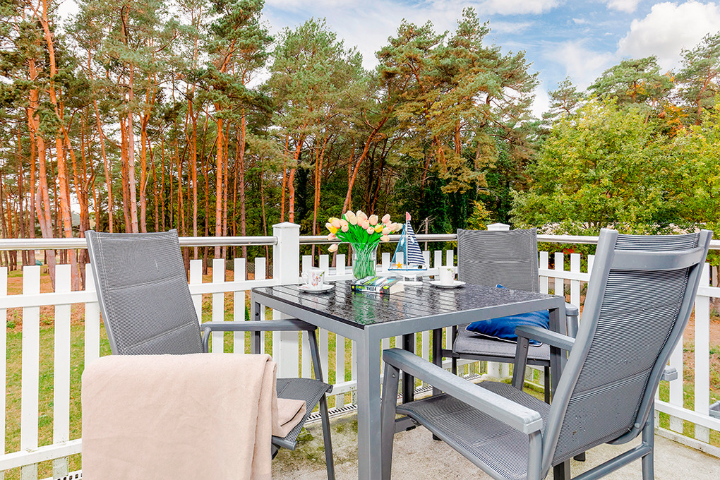 Ort: Ostseebad Koserow. Hervorragende Lage auf einem sonnigen Gartengrundstück in Süd-Ausrichtung. Schöner Blick auf den angrenzenden Kiefernwald. Steilufer mit Abgang zum Ostseestrand nur 500 m! Ortsmitte 1,2 km.