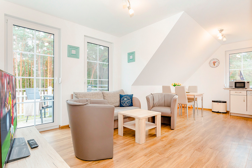 Haus: Schönes Ferienhaus mit zwei Ferienwohnungen, 2016 neu gebaut. Geschmackvolle Einrichtung, moderne Ausstattung: Sat-TV, Radio/CD. Bäder mit Haarföhn, Handtuchwärmern. Fußbodenheizung. Süd-Terrasse oder Süd-Balkon (Sitzmöbel). 500 qm großer Gemeinschaftsgarten mit Spiel- und Liegewiese. Gartenhaus für Fahrräder. Pkw-Stellplätze pro Wohnung.