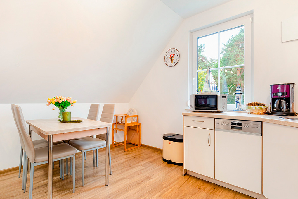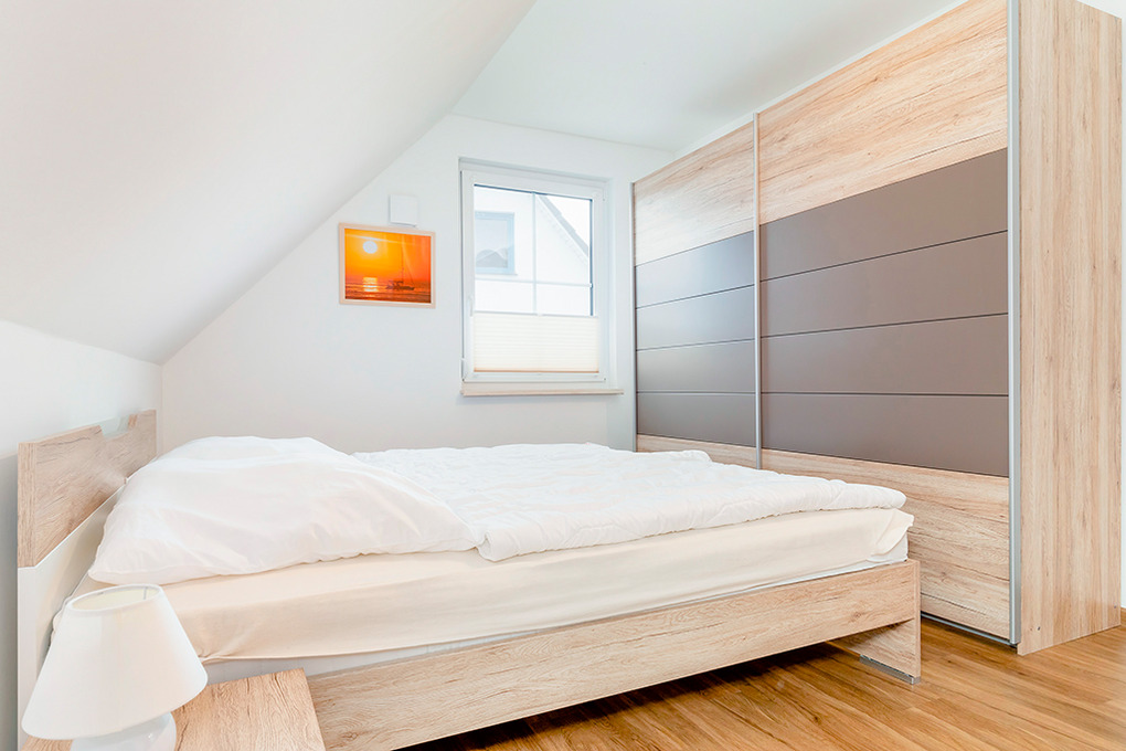 D 16.11 Ferienhaus 4-8 Pers.: 6-Zimmerhaus mit 117 qm Wohnfläche über 2 Etagen. Parterre: Windfang mit Garderobe. Wohn-/Essraum mit gemütlicher Sofa-Sitzgruppe, Sat-TV, Radio/CD, Esstisch, Küchenzeile (Backofen, Mikrowelle, Spülmaschine). Zwei Doppelzimmer. Bad/WC. 2. Etage (sep. Zugang, Dachschrägen): Wohn-/Essraum mit gemütlicher Sofa-Sitzgruppe, Sat-TV, Radio/CD, Esstisch, Küchenzeile (Backofen, Mikrowelle, Spülmaschine). Doppelzimmer. 2-Bettzimmer. Bad/WC. Überdachte Terrasse und Südbalkon, jeweils mit Sitzmöbeln.