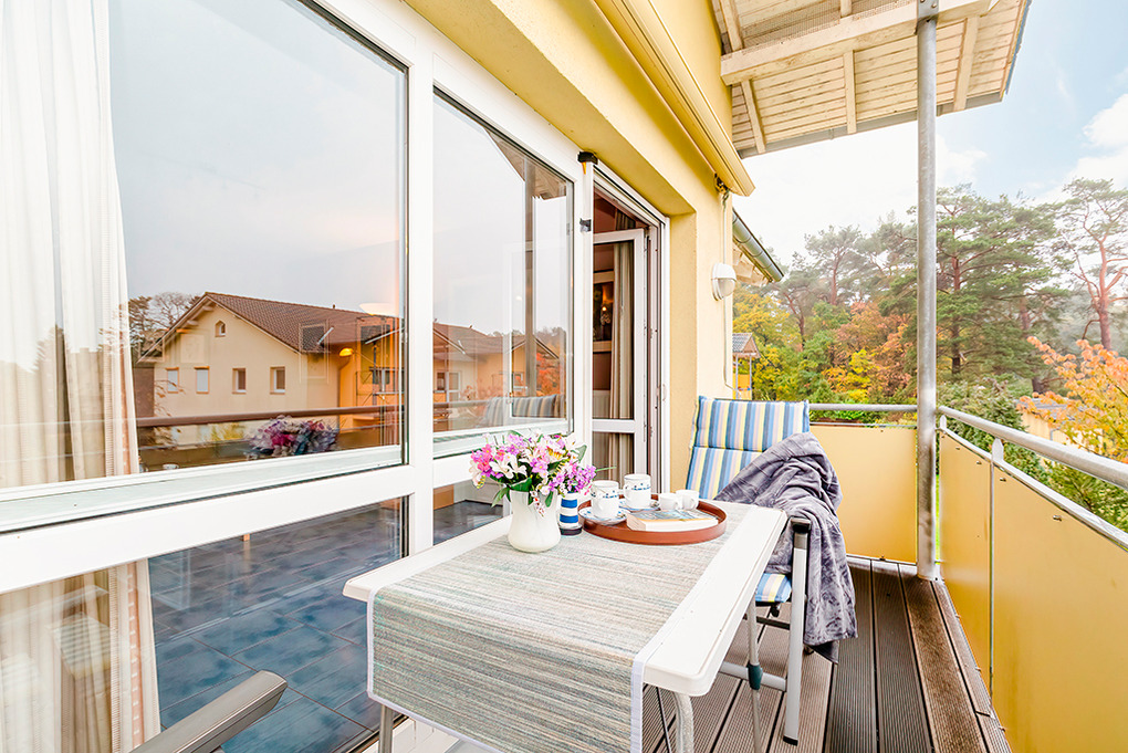Haus: Schönes, gepflegtes Apartmenthaus. Ferienwohnung mit geschmackvoller, komfortabler Einrichtung. Zentralheizung. Nichtraucherwohnung. Überdachter Balkon mit Sitzmöbeln. Fahrradschuppen. 1 Pkw-Stellplatz pro Fewo.