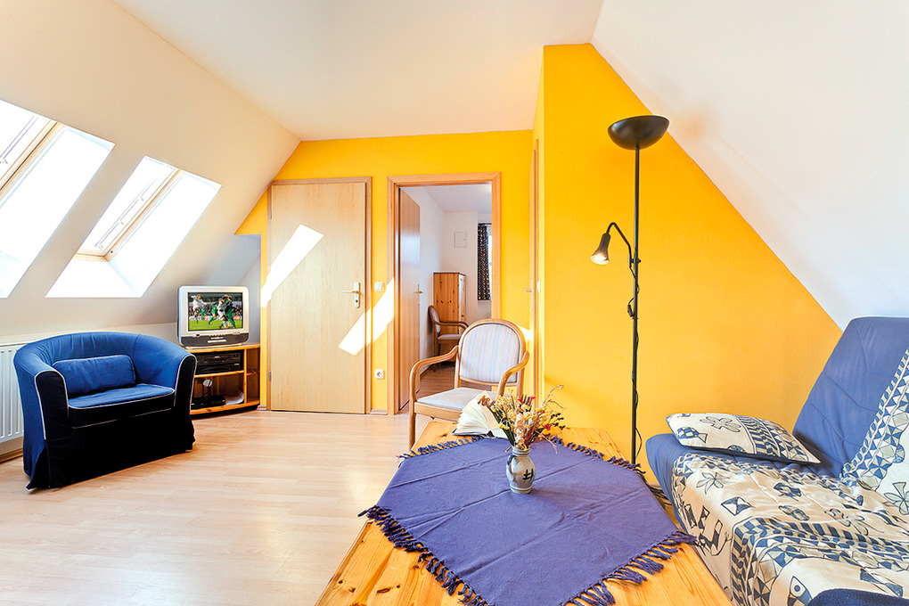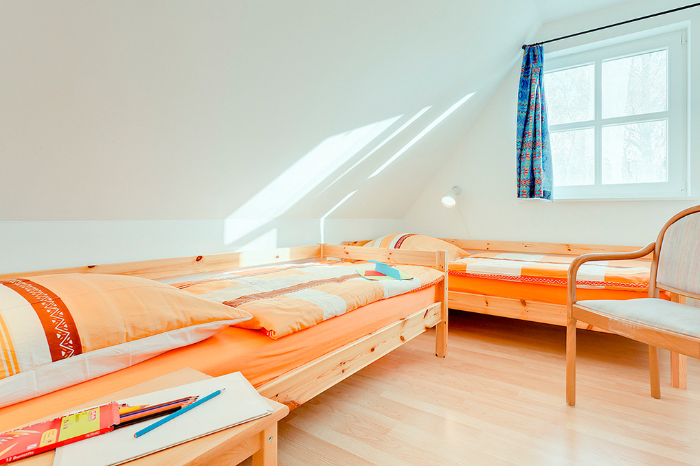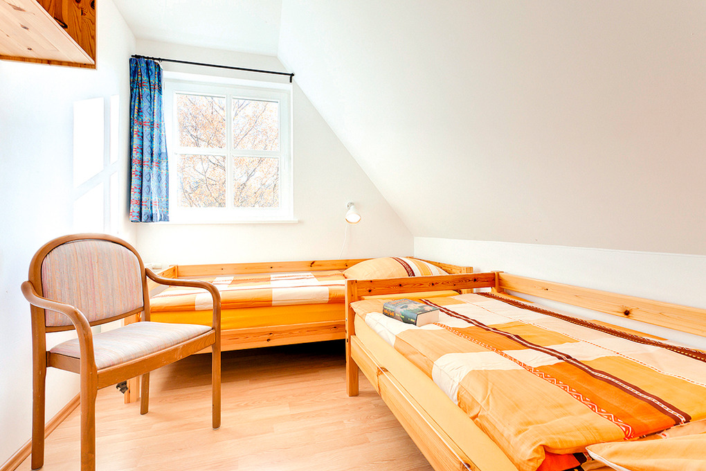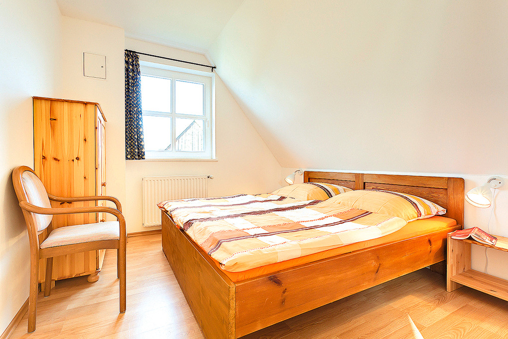 D 18.4 Ferienhaus 3-8 Pers.: 4-Zimmerhaus mit 95 qm Wohnfläche. Parterre: Großzügiger, heller Wohn-/Essraum mit Sitzecke, Radio/CD, Esstisch, Küchenzeile (Backofen, Spülmaschine). 2 Bäder/WC. 1. Etage (leichte Dachschrägen): Offen gestalteter Wohn-/Schlafbereich mit Schlafcouch (2 Pers.), Sesseln, Sat-TV, DVD. Doppelzimmer. Zwei 2-Bettzimmer. Separates WC.