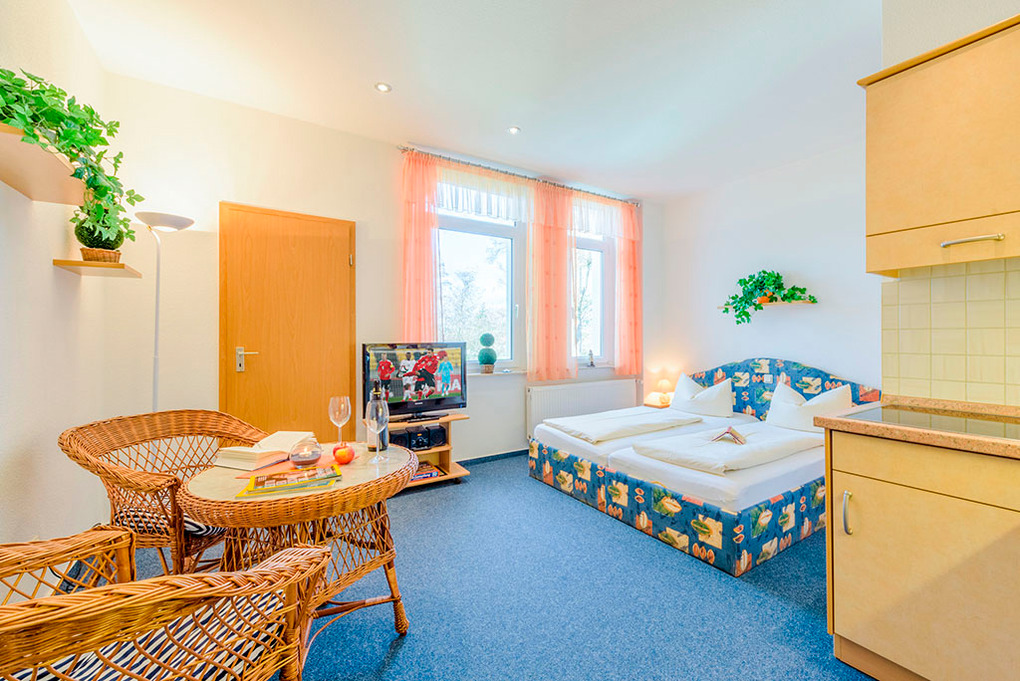 D 20.30A Wohnung 2 Pers.: Studio, 25 qm Wohnfläche. Gemütlicher Wohn-/Schlafraum mit Doppelbett, Esstisch, Küchenzeile. Dusche/WC.