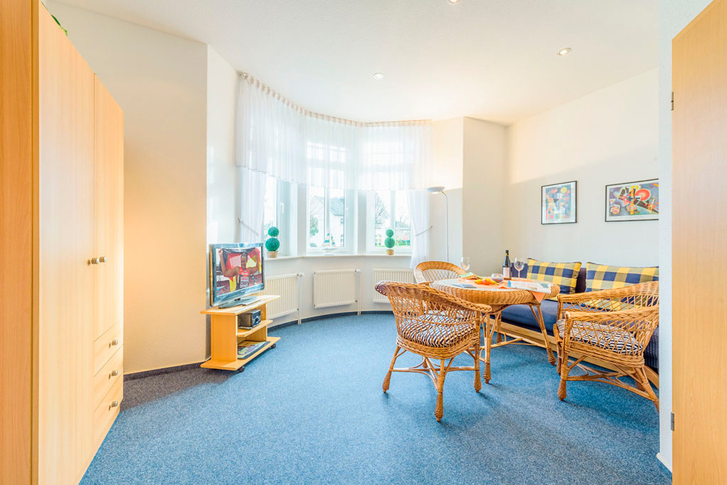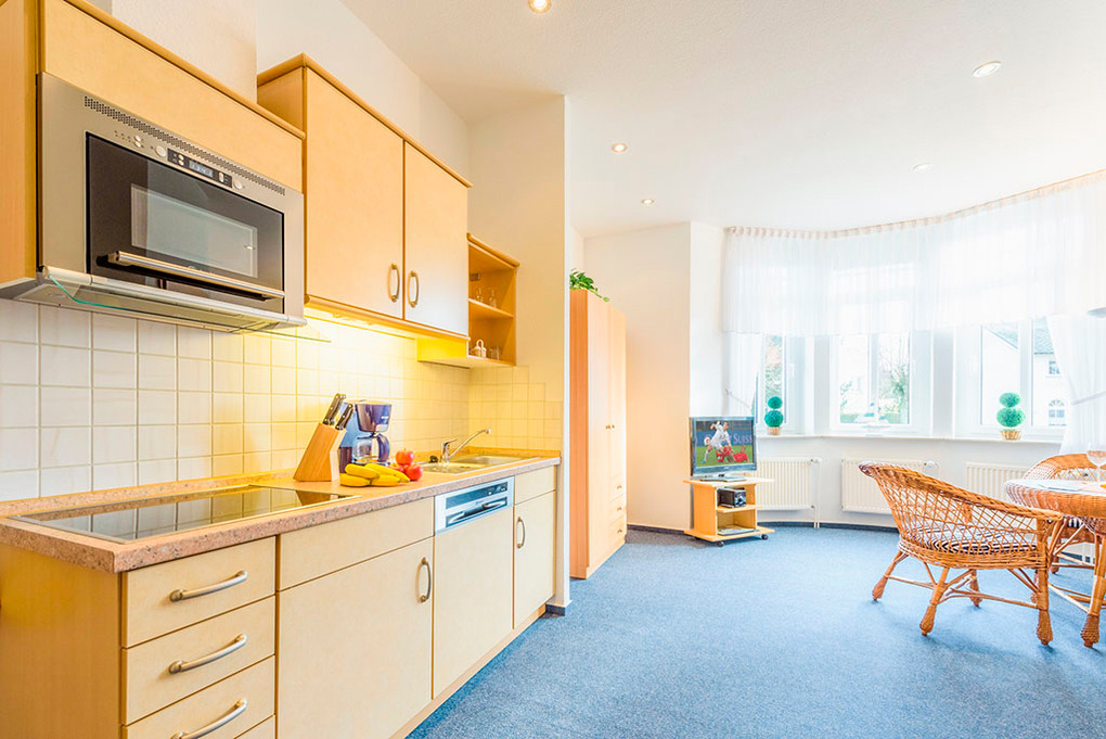 Haus: 8 Ferienwohnungen in einer ansprechend sanierten Villa. Alle Fewos mit TV, Spülmaschine. Internet kostenlos über W-Lan. Zentralheizung. Gemeinschaftlicher kleiner Garten. Fahrradverleih am Haus. Nichtraucherwohnungen.