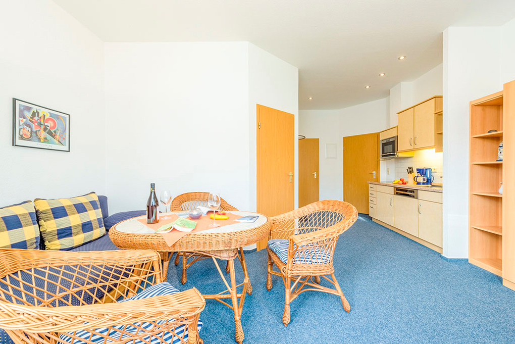 D 20.32B Wohnung 2-4 Pers.: 2-Zimmerwohnung, 30 qm Wohnfläche. Wohn-/Schlafraum mit gemütlicher Schlafcouch (2 Pers.), Esstisch, Küchenzeile. Doppelzimmer. Dusche/WC.