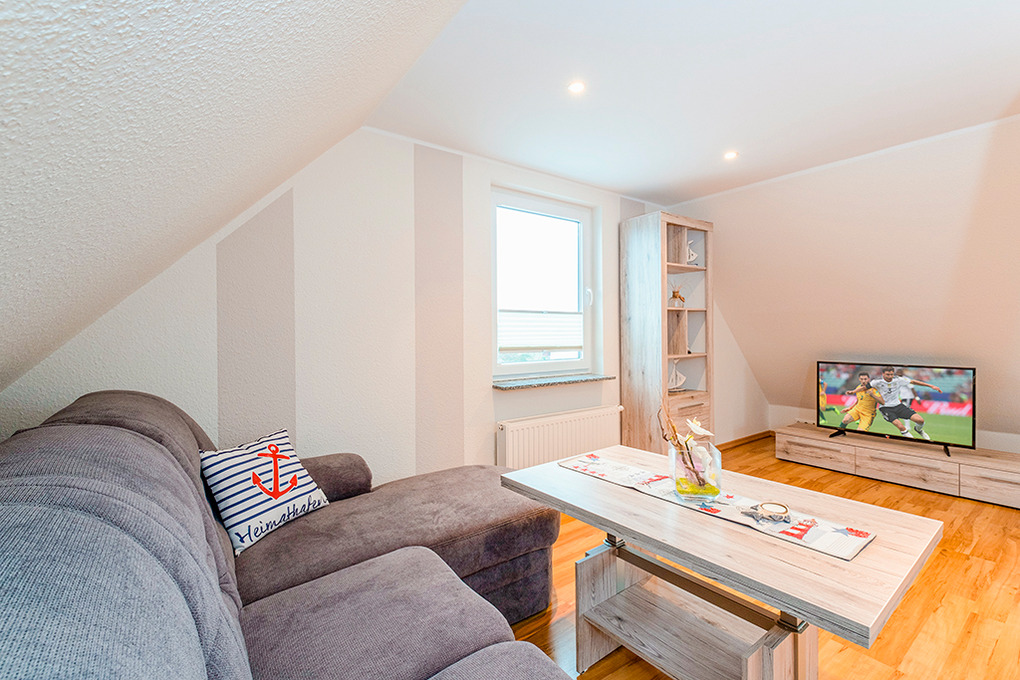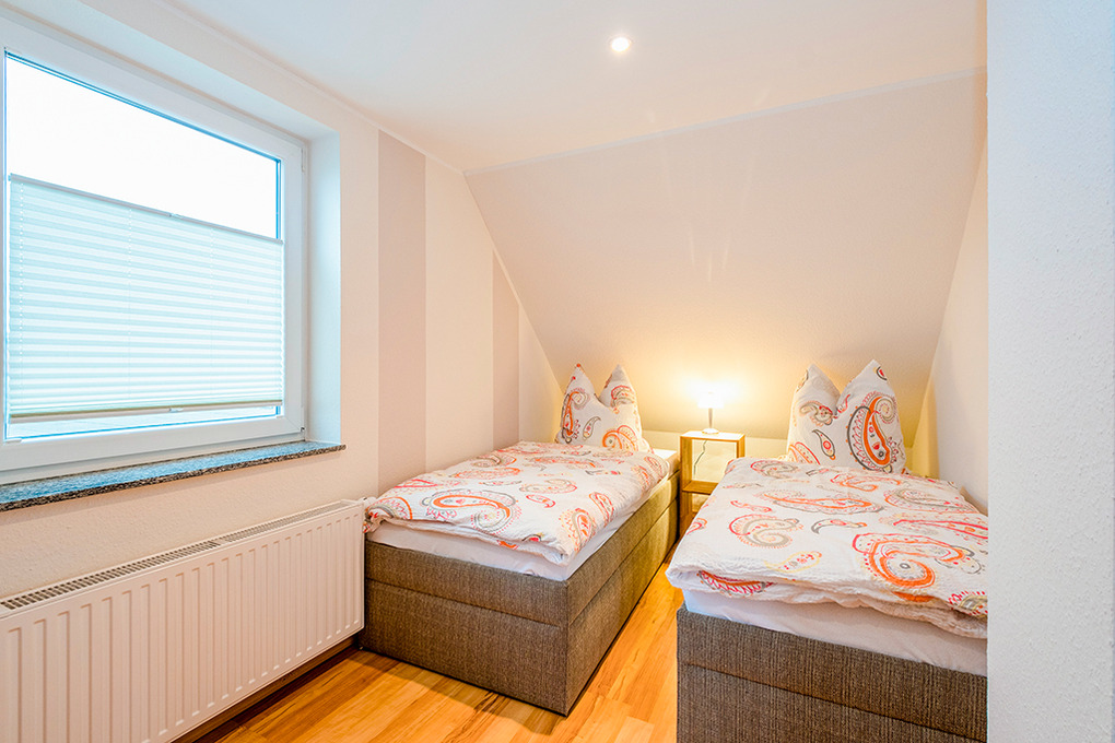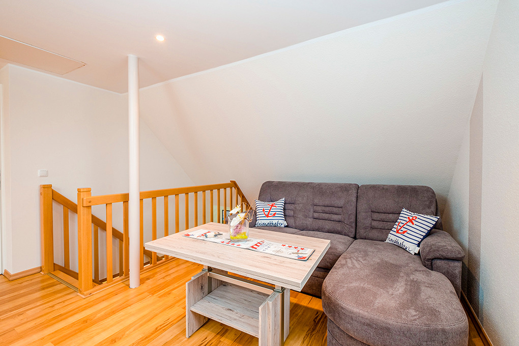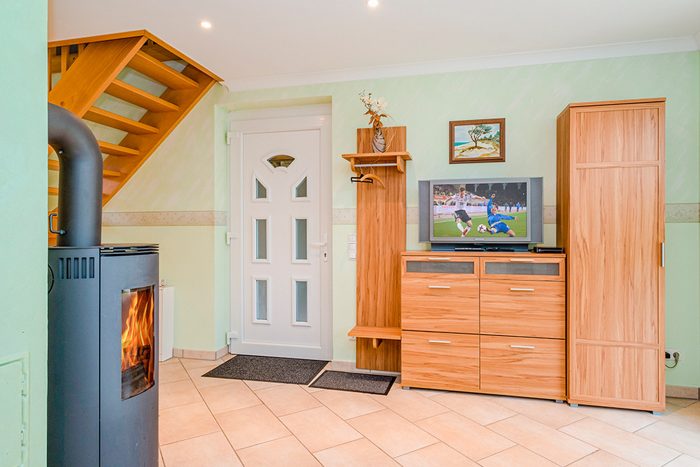 D 23.7 Ferienhaus 2-3 Pers.: 2-Zimmerhaus mit 60 qm Wohnfläche über 2 Etagen. Parterre: Freundliche Wohnküche mit Esstisch, Sat-TV, moderner Einbauküche (4 Ceran-Felder, Backofen, Spülmaschine). Bad: Du, Wb, WC, Waschmaschine. 1. Etage: Gemütlicher Wohn-/Schlafraum mit Sitzgarnitur (Schlafcouch 1 Pers.), Sat-TV, 2 Einzelbetten in Raumnische. Separates WC.