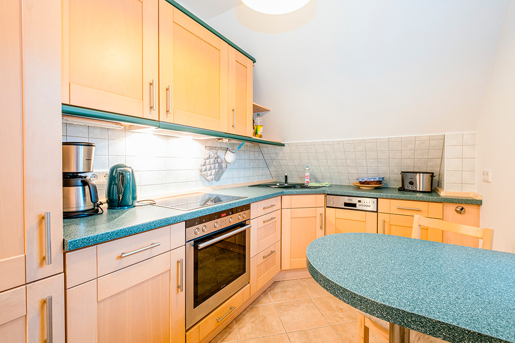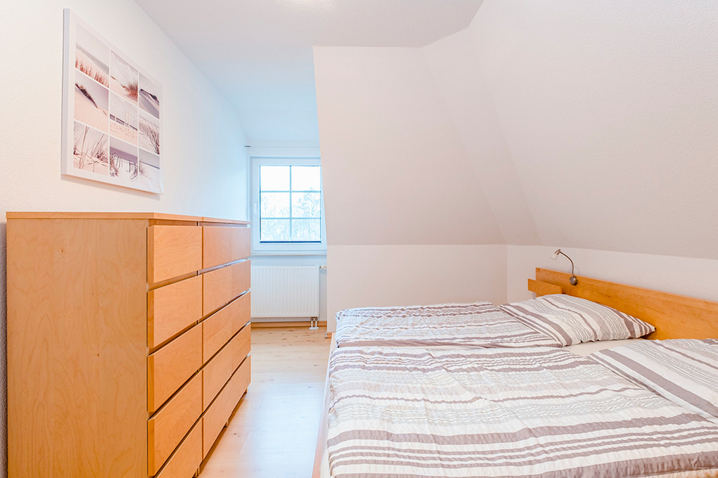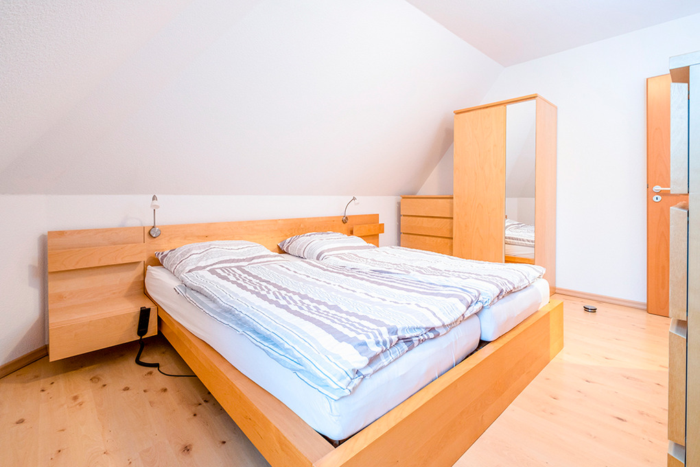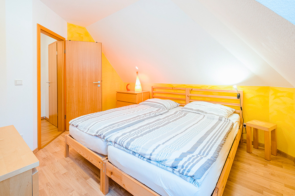 D 23.8 Wohnung 2-4 Pers.: Großzügige 3-Zimmerwohnung mit 68 qm Wohnfläche über 2 Etagen. 1. Etage: Heller Wohn-/Essraum mit Couchgarnitur, Sat-TV, Radio, Esstisch, gut ausgestatteter Küchenzeile (Backofen, Spülmaschine). Bad: Du, Wb, WC, Waschmaschine. Treppe in die 2. Etage (leichte Dachschrägen): Doppelzimmer mit Sat-TV. Doppelzimmer.