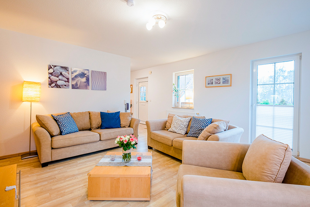 Haus: Schönes Ferienhaus mit komfortablen Ferienwohnungen. Moderne, geschmackvolle Einrichtung. 2 Schlafzimmer. Spülmaschine, Waschmaschine. Zentralheizung. Nichtraucherwohnung. Balkon mit Sitzmöbeln. Fahrradschuppen. 1 Pkw-Stellplatz/Fewo.
