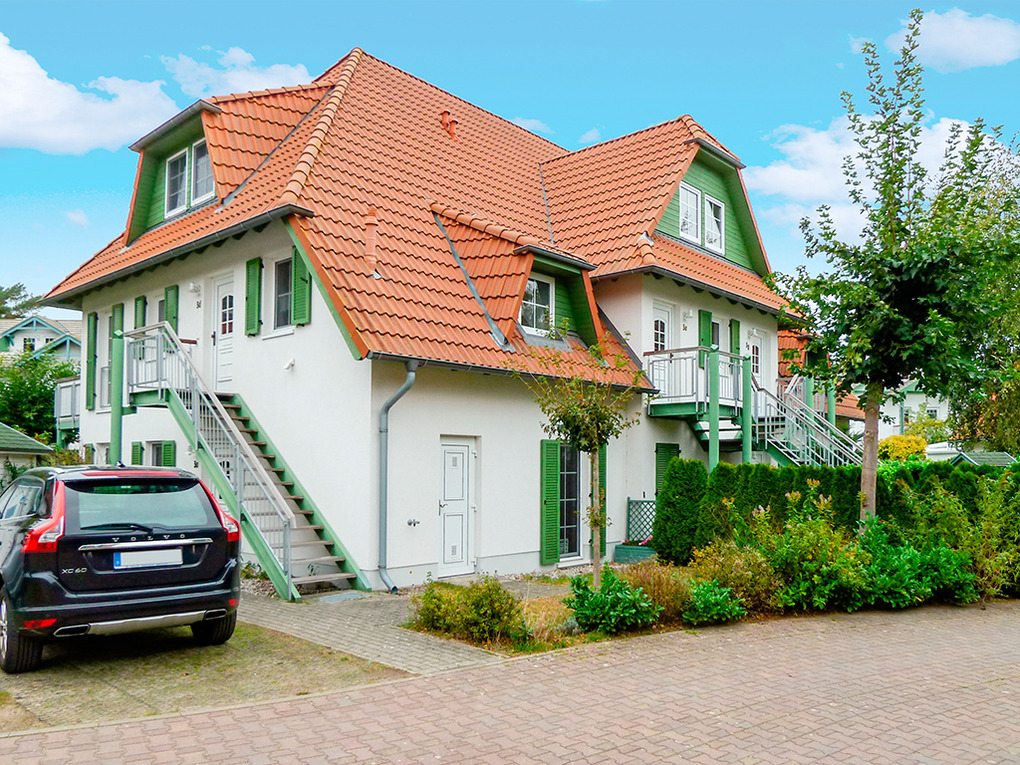 Ort: Ostseebad Karlshagen. Hervorragende Lage in einer Ferienhaussiedlung in unmittelbarer Strandnähe (100 m). Yachthafen am Peenestrom 3 km. Ortsmitte, Bahnhof Bäderbahn ca. 1 km.