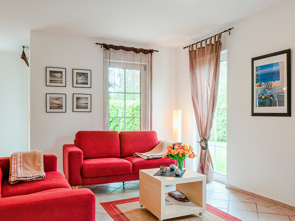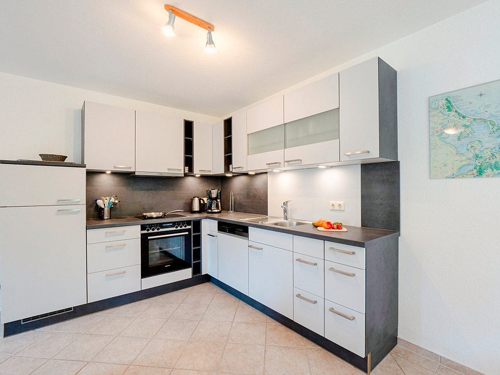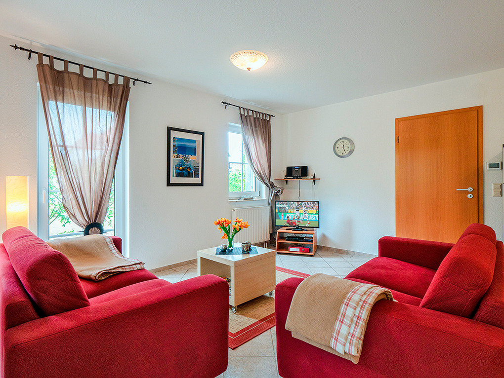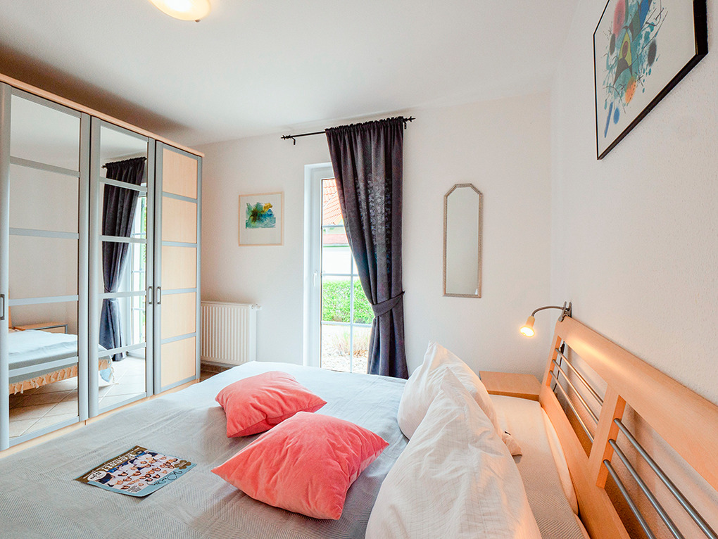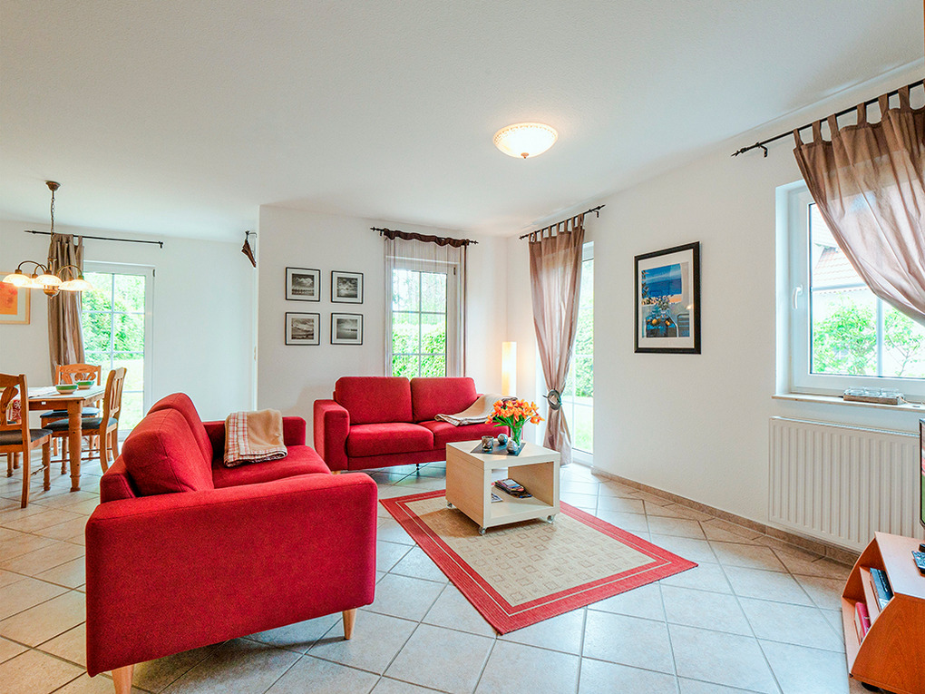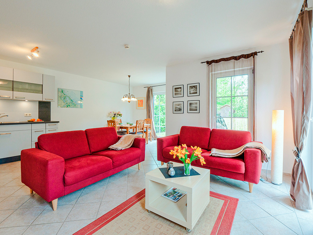 D 23.9 Wohnung 2-4 Pers.: 3-Zimmerwohnung mit 60 qm Wohnfläche, Parterre. Heller Wohn-/Essraum mit Couchgarnitur, Sat-TV, Radio, Esstisch, gut ausgestatteter Küchenzeile (Backofen, Spülmaschine). Doppelzimmer. 2-Bettzimmer mit Schlafcouch. Bad/WC.