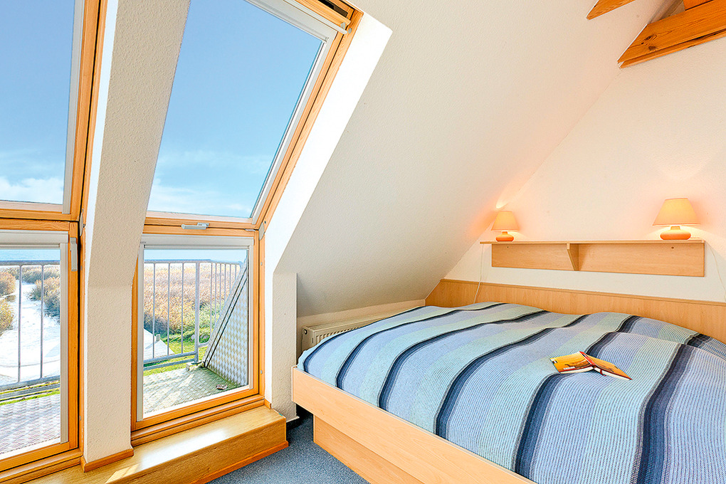 D 25.40 Ferienhaus 2-4 Pers.: 3-Zimmer-Reihenhaus mit 56 qm Wohnfläche über 2 Etagen. Parterre: Heller Wohn-/Essraum mit Couchgarnitur, Sat-TV, Esstisch, gut ausgestatteter Küchenzeile (Backofen, Spülmaschine). Bad/WC. Treppe in die 1. Etage mit Dachschrägen: Doppelzimmer mit kleinem Balkon. 2-Bettzimmer mit Einzelbett, Ausziehbett. Bad/WC.