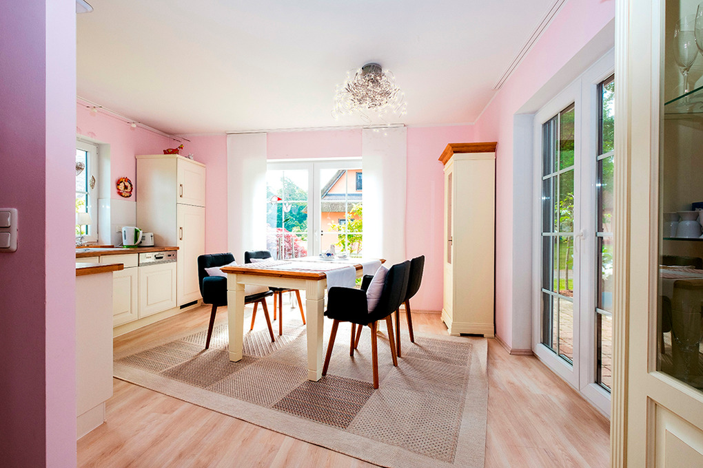 D 28.30C Ferienhaus 2-4 Pers.: Exklusives 3-Zimmerhaus mit 91 qm Wohnfläche über 2 Etagen (Nichtraucherhaus). Parterre: Gemütlicher Wohn-/Essraum mit Kaminofen, Couchgarnitur, Flachbild-Sat-TV, Esstisch, moderner Einbauküche (4 Pl. E-Herd, Mikrowelle, Spülmaschine). Bad: Du, Wb, WC. 1. Etage (leichte Dachschrägen): Doppelzimmer. 2-Bettzimmer. Großes Bad: Rund-Bw, Wb, WC, Waschmaschine.