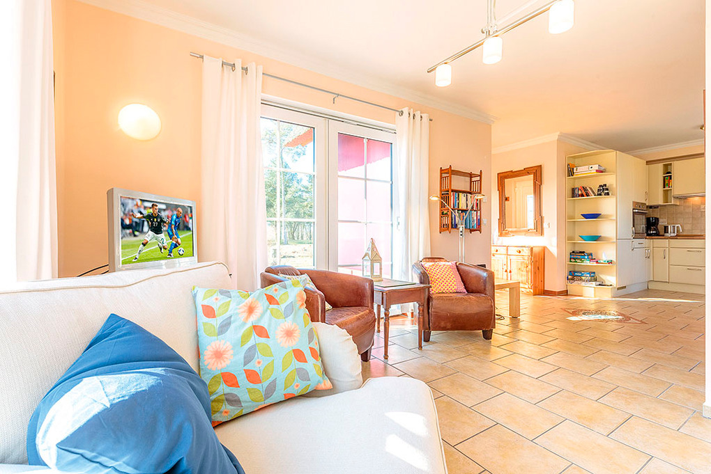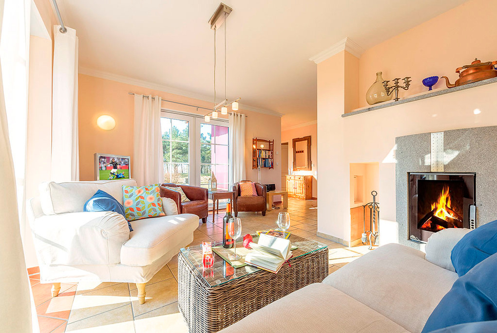 Haus: Großzügig angelegte Ferienhausanlage in parkähnlicher Umgebung mit lichtem Baumbestand. Hochwertiges, reetgedecktes Ferienhaus mit Sauna, Kaminofen und mit Wasserblick. Internetzugang über W-Lan. Gehobene Ausstattung mit geschmackvoller Möblierung. Fußbodenheizung. Terrasse mit Sitzmöbeln. 1 Pkw-Stellplatz/Haus.
