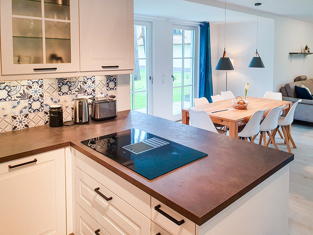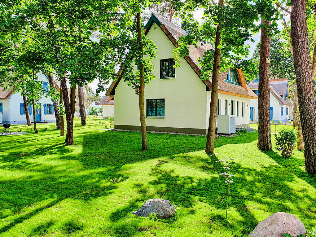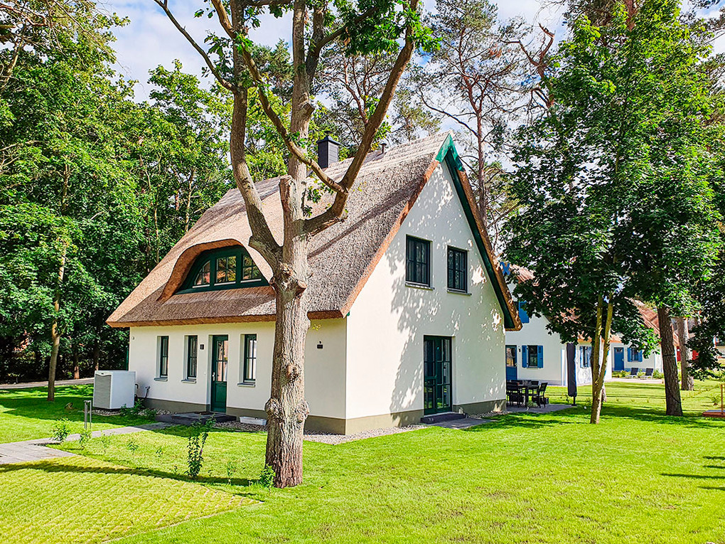 Haus: Exklusives Reetdachhaus mit Sauna und Kamin, 2022 neu erbaut. Gehobene Ausstattung mit moderner, geschmackvoller Einrichtung. 3 Schlafzimmer, 2 Bäder. Kostenloser Internetzugang (W-Lan, teilweise eingeschränkt). Fußbodenheizung. Terrasse und Balkon mit Sitzmöbeln. Schöner Garten mit Rasenfläche. 2 Pkw-Stellplätze am Haus.