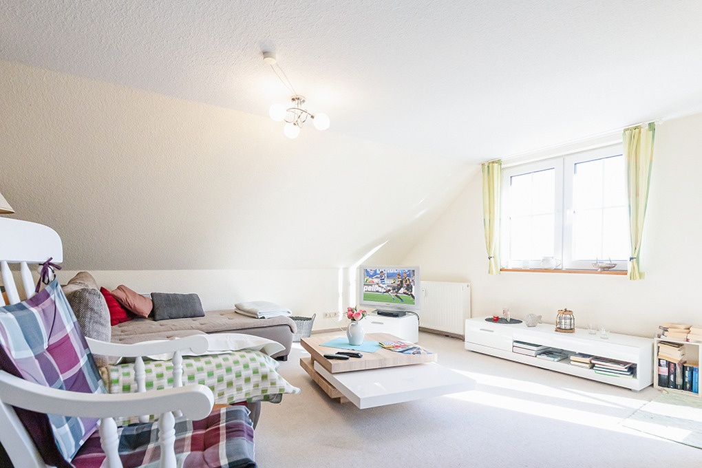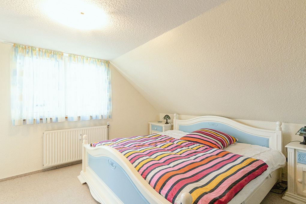 D 29.85 Wohnung 2-3 Pers.: Große 2-Zimmerwohnung mit 63 qm Wohnfläche, 2. Etage. Heller Wohn-/Essraum mit schönem Wasserblick, Sitzgarnitur (Schlafcouch 1 Pers.), Sat-TV, Stereoanlage, Esstisch, Küchenzeile (Backofen, Spülmaschine). Doppelzimmer. Bad/WC. Balkon mit Sitzmöbeln, schönem Wasserblick.