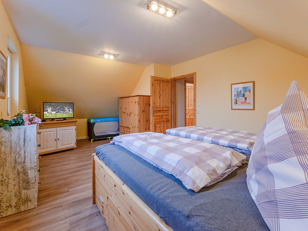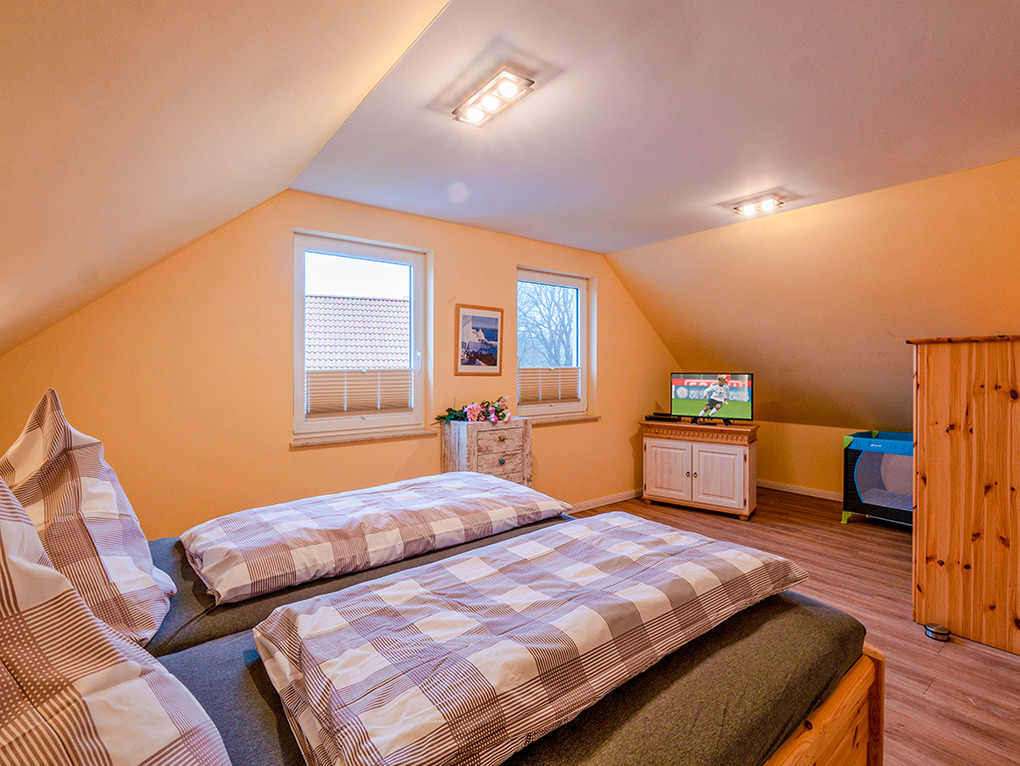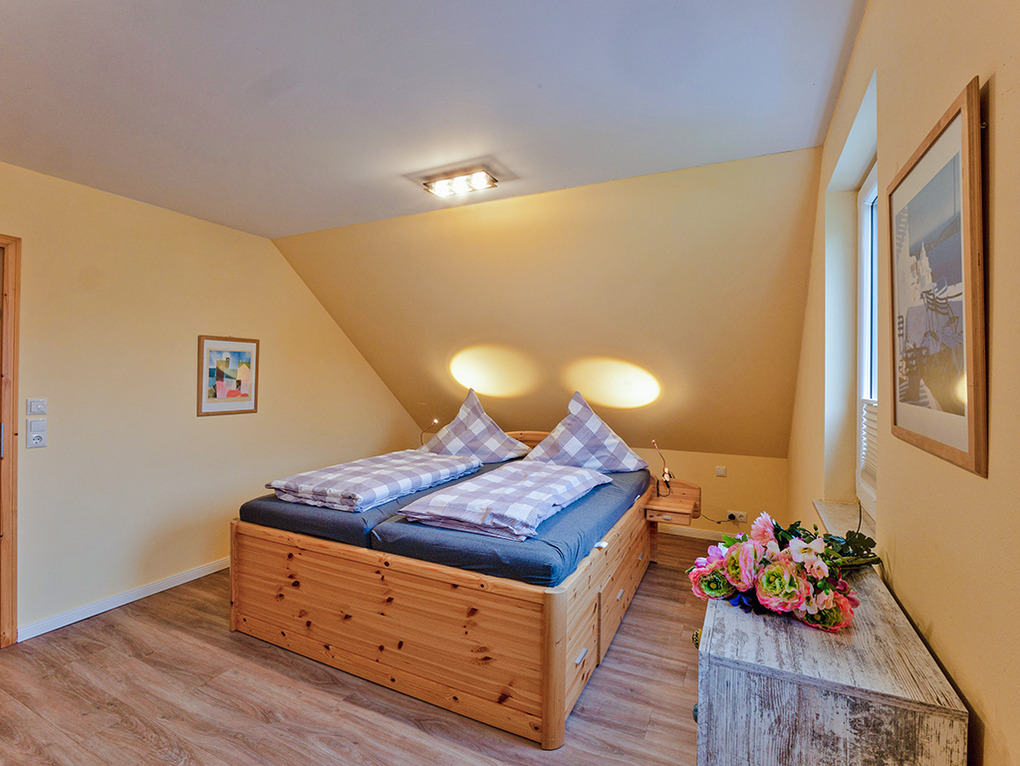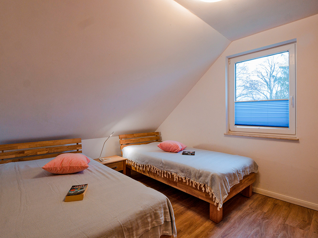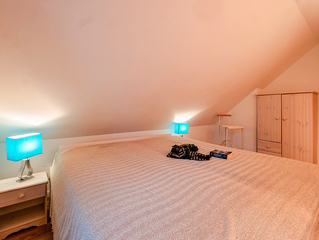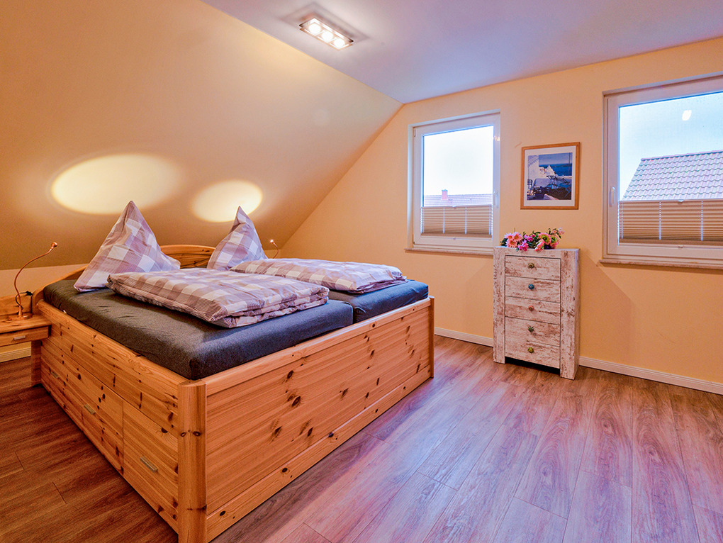 D 45.54 Ferienhaus 2-6 Pers.: Modernes 4-Zimmerhaus mit 105 qm Wohnfläche über 2 Etagen. Parterre: Wohn-/Essraum mit Seeblick, Sitzgruppe, Sat-TV, Blu-Ray, Esstisch, gut ausgestatteter Einbauküche (Kochinsel, Backofen, Mikrowelle, Spülmaschine), Terrasse. Bad: Du, Wb, WC. 1. Etage (leichte Schrägen): Großes Doppelzimmer mit Sat-TV, Blu-Ray. Doppelzimmer. 2-Bettzimmer. Bad: Du, 2 Wb, WC.