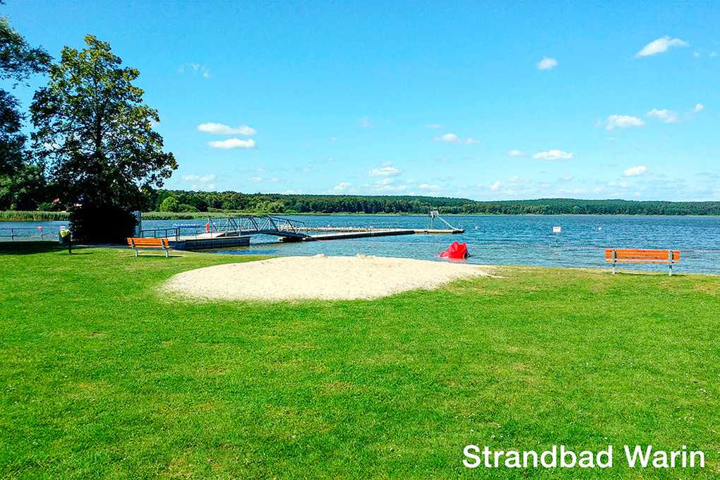 Ort: Warin. Hervorragende Lage mit fantastischem Blick auf den Großen Wariner See in der Schweriner Seenplatte. Ruhige Lage in einem neuen Ferienhausgebiet. Strandbad Warin mit schönem Badestrand, Steg, Rutsche, Spiel- und Liegewiese, Fußball, Beach-Volleyball, Imbiss nur 250 m! Weitere idyllische Badestelle 300 m. Ortsmitte mit Geschäften, Restaurants 800 m. Wismar 20 km. Schwerin 35 km.