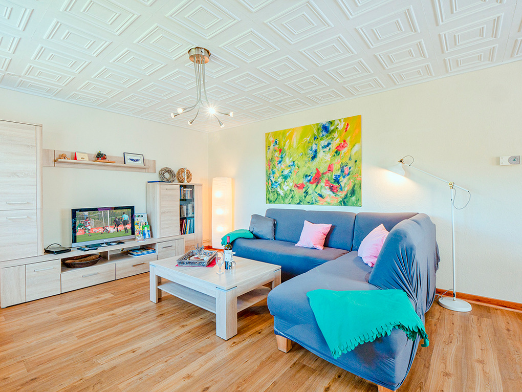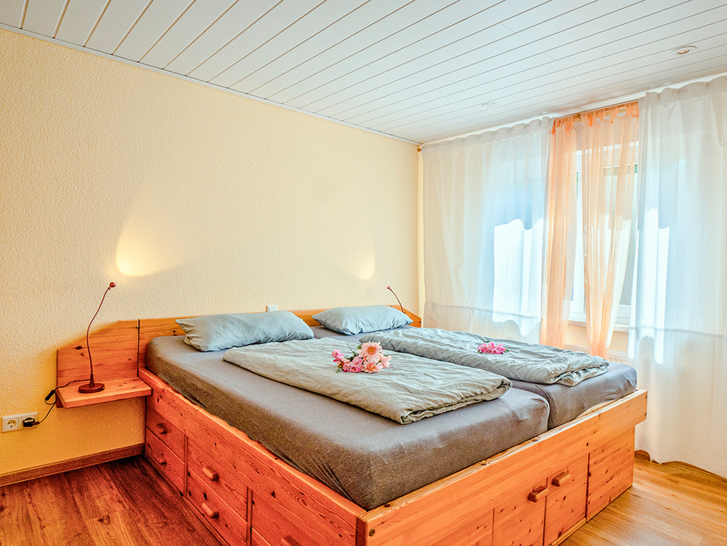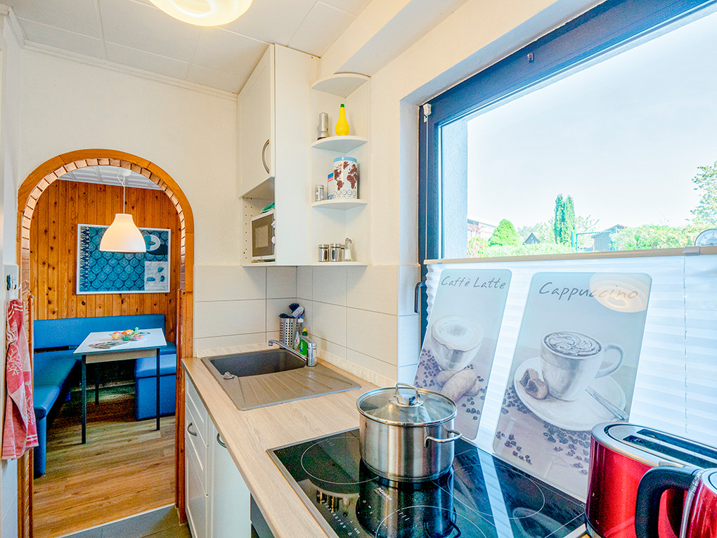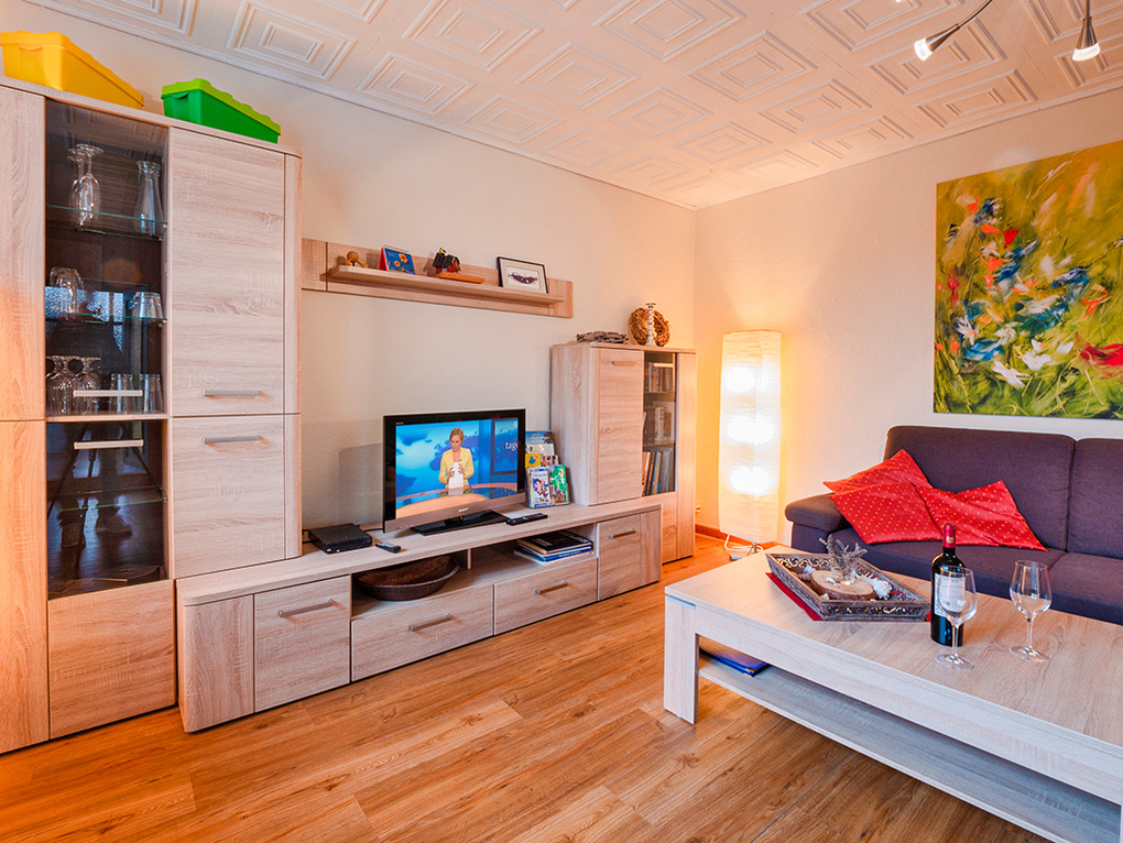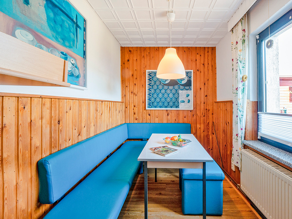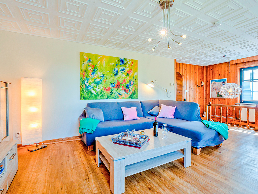 D 45.350 Ferienhaus 2-4 Pers.: 5-Zimmerhaus mit 95 qm Wohnfläche über 2 Etagen. Hochparterre (Hanglage): Schöner Wohnraum mit Sofa-Sitzecke, Sat-TV, DVD, Radio/CD. Heller Wintergarten mit Panoramafenstern, Wasserblick durch die Uferbegrünung, Esstisch. Küche mit Backofen, Mikrowelle, Spülmaschine. Weiterer kleiner Essraum mit Eckbank, Esstisch. Doppelzimmer. Bad: Du, Wb, WC. Tiefparterre: Kleines Doppelzimmer mit franz. Bett.