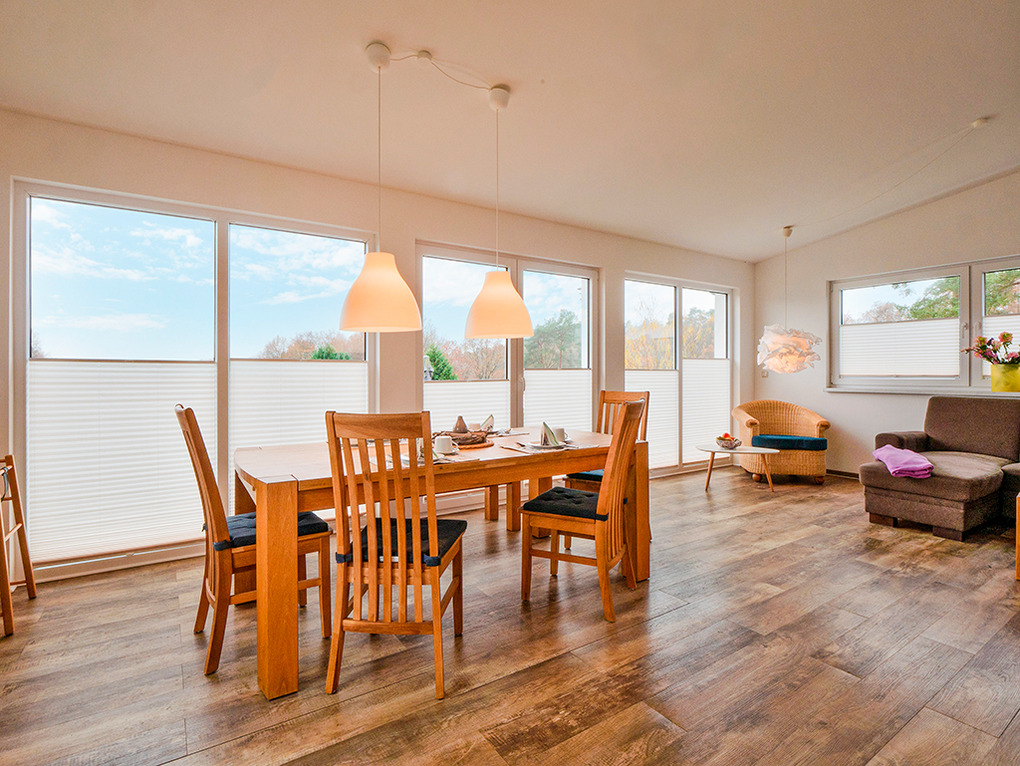Haus: Schönes Ferienhaus mit Wasserblick, 2021 aufwendig renoviert. Geschmackvolle Einrichtung, moderne Komfortausstattung. Internetzugang über W-Lan. Waschmaschine. Zentral-/Fußbodenheizung. Nichtraucherhaus. Schön gestalteter Garten mit kleiner Rasenfläche, Terrasse, Sitzmöbeln, Sonnenschirm, Kamingrill. 2 Pkw-Stellplätze vorhanden, davon einer im Carport. Hinweis: Angelkarten und Bootsverleih für den Glammsee beim Fischer in Witzig (3,5 km).