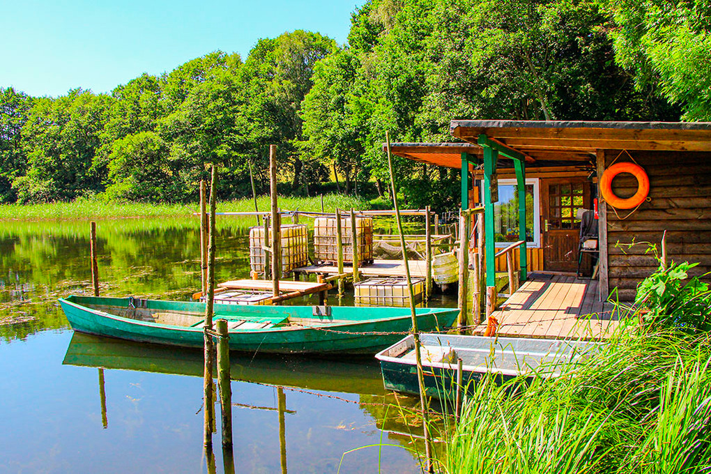 Ort: Mustin bei Sternberg, Mecklenburgische Seenplatte. Ruhige Lage auf einem Gartengrundstück mit schönem Blick auf den Scharbowsee (50 m). Glammsee zum Baden und Angeln nur 300 m. Witzig mit Restaurant 3,5 km. Sternberg mit Restaurants, Geschäften 10 km.