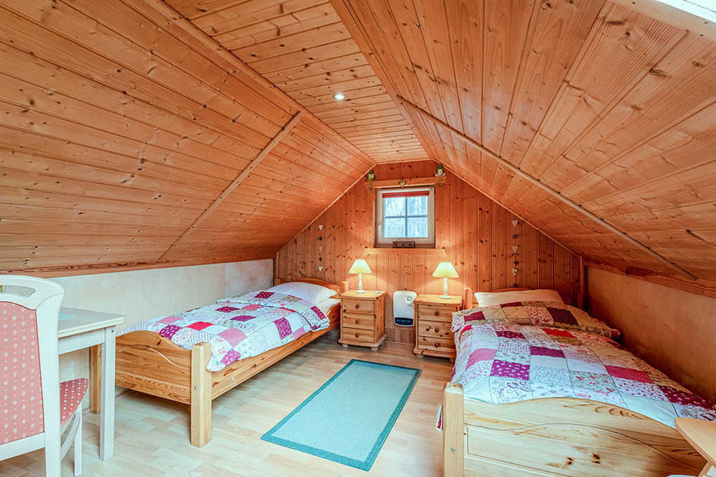 D 48.1 Ferienhaus 2-4 Pers.: 3-Zimmerhaus mit 55 qm Wohnfläche über 2 Etagen. Parterre: Bis in den Dachgiebel ausgebauter Wohn-/Essraum mit Kaminofen, Sitzgruppe, Esstisch, moderner Küchenzeile (Backofen, Mikrowelle, Spülmaschine). Doppelzimmer. Bad: Du, Wb, WC, Sauna, Waschmaschine. Dachgeschoss: Doppelzimmer mit TV.