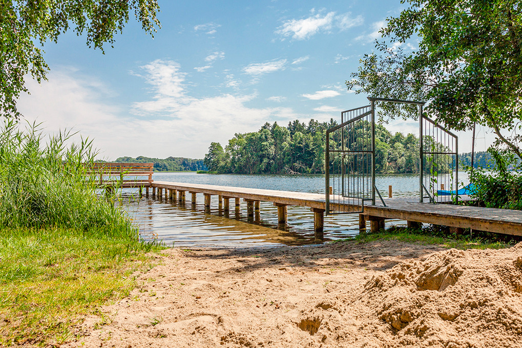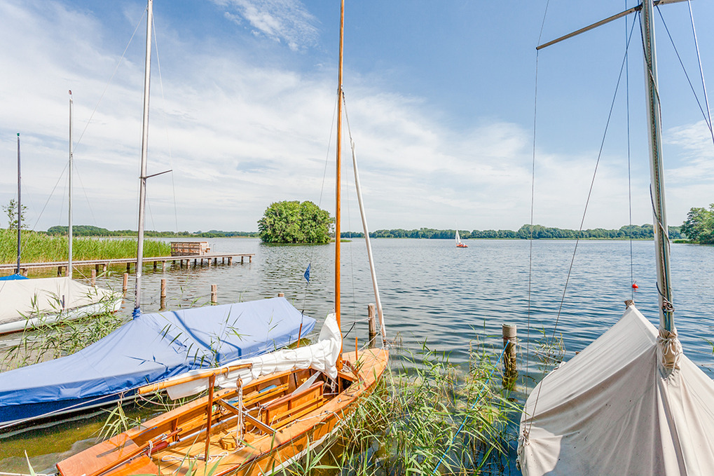 Ort: Krakow am See. Einzigartige, idyllische Lage direkt am Krakower See, auf naturbelassenem Grundstück mit altem Baumbestand. Zur Anlage gehörend: Badestelle mit Bootsteg (90 m), Kinderspielplatz. Ortsmitte mit Restaurants, Geschäften 1,9 km.