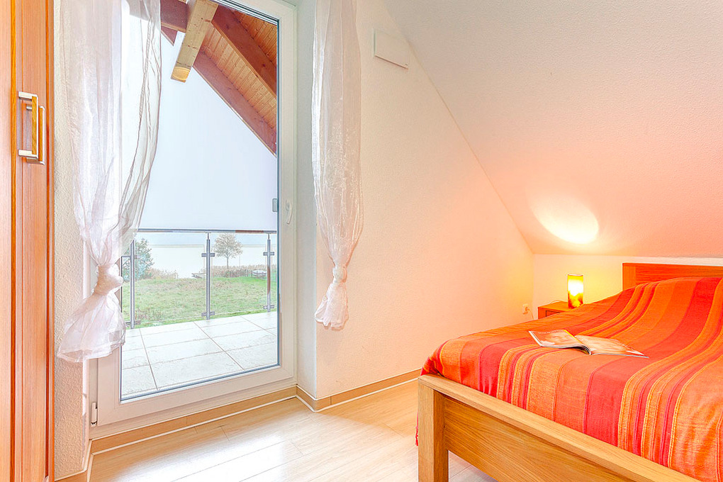 Haus: Ansprechendes Ferienhaus mit Kaminofen. Komfortable Ausstattung, geschmackvolle Möblierung. Internetzugang kostenlos über W-Lan. Fußbodenheizung (Erdwärme). Terrasse und Balkon mit Sitzmöbeln, schöner Seeblick aus der 2. Reihe. Garten mit Rasenfläche. Badestelle, Bootssteg 30 m.
